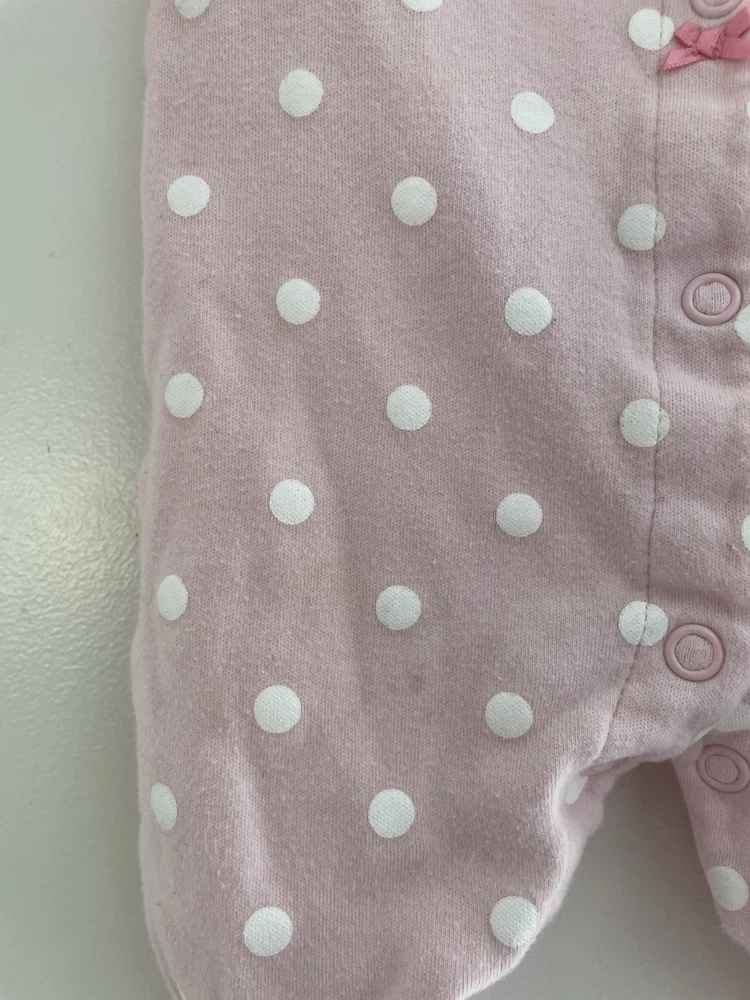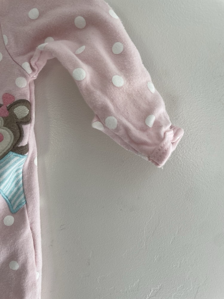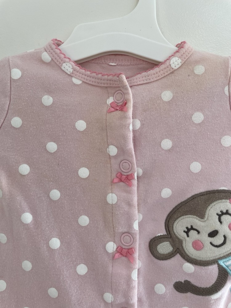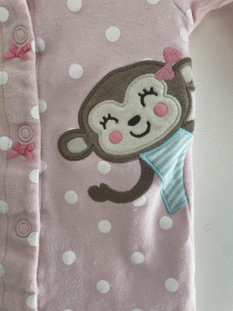 Carters Baby Girl Cute Monkey Polka Dot 100% Cotton Snap-Up Sleep & Play Pink NB. Condition is pre-owned. Smoke free, pet free home. Shipped via USPS Ground Advantage. In good condition. There are stains on the front. Free of rips.