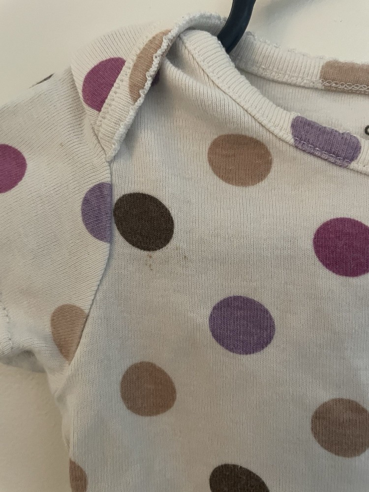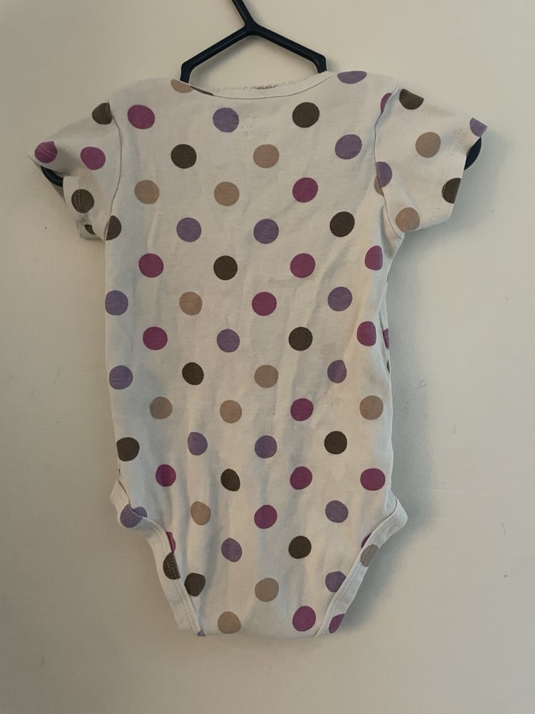 Carter's Baby Girls Colorful Big Polka Dot Cotton Short Sleeve Bodysuit Cream 6M. Condition is pre-owned. Smoke free, pet free home. Shipped via USPS Ground Advantage. In good condition. There are light stains on the front. Free of rips.