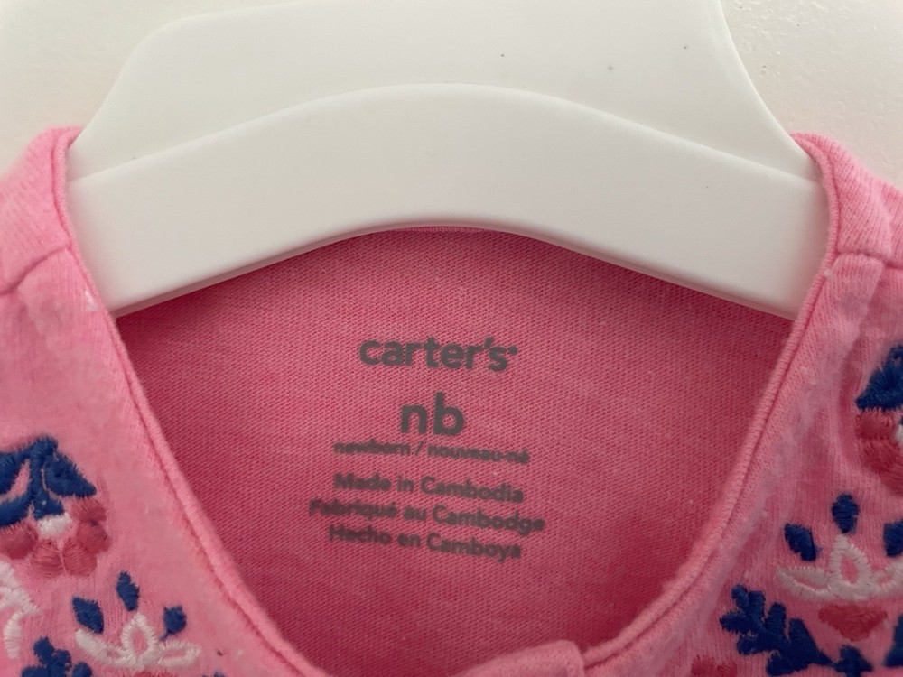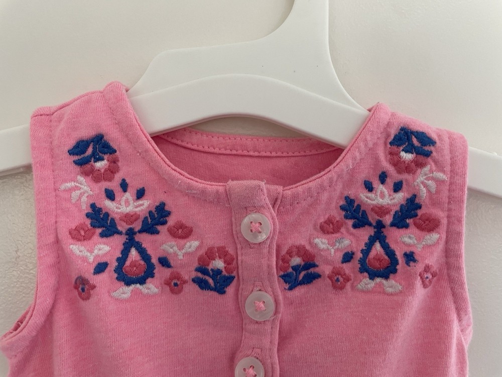 Carter's Baby Girls Embroidered Floral Cinched Waist Cotton Blend Romper Pink NB. Condition is pre-owned. Smoke free, pet free home. Shipped via USPS Ground Advantage. In very good condition. Free of rips or stains.