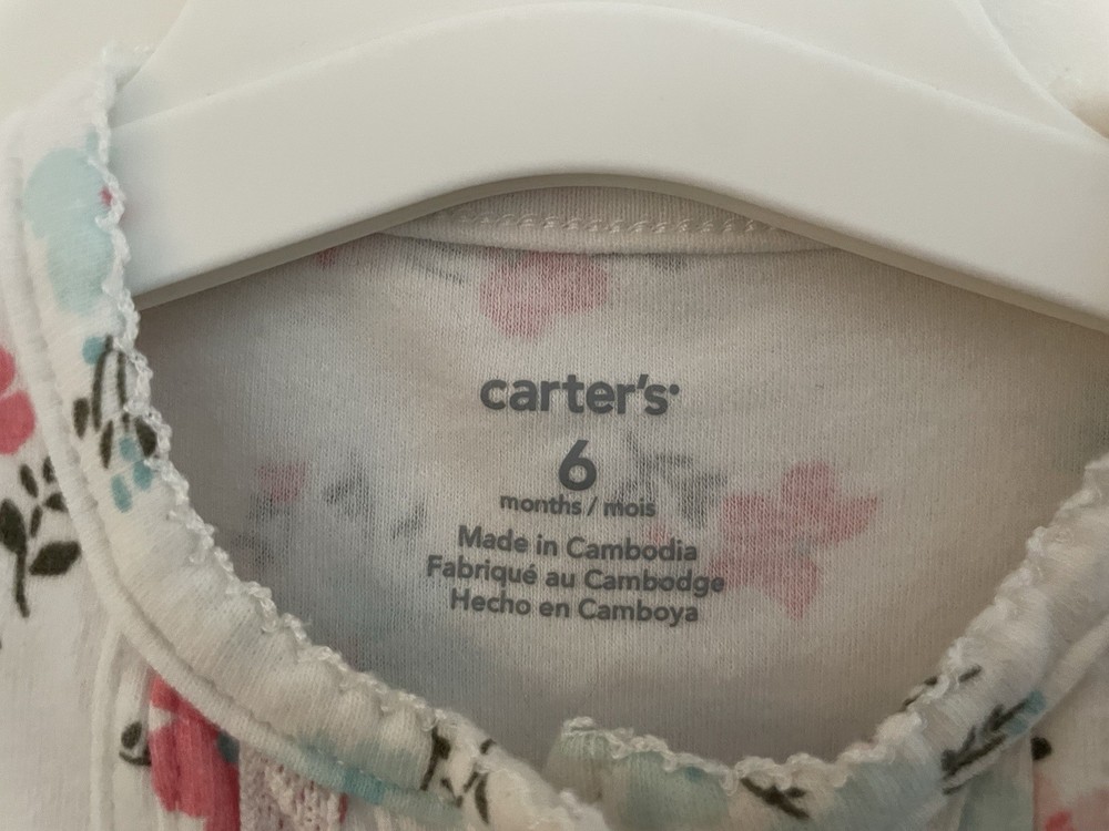 Carter's Baby Girls Floral 100% Cotton Lace Henley Long Sleeve Bodysuit White 6M. Condition is pre-owned. Smoke free, pet free home. Shipped via USPS Ground Advantage. In good condition. There are light stains on the front. Free of rips.
