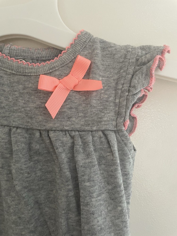 Carter's Baby Girls Pink Bow 100% Cotton Flutter Short Sleeve Bodysuit Gray 6M. Condition is pre-owned. Smoke free, pet free home. Shipped via USPS Ground Advantage. In very good condition. Free of rips or stains.