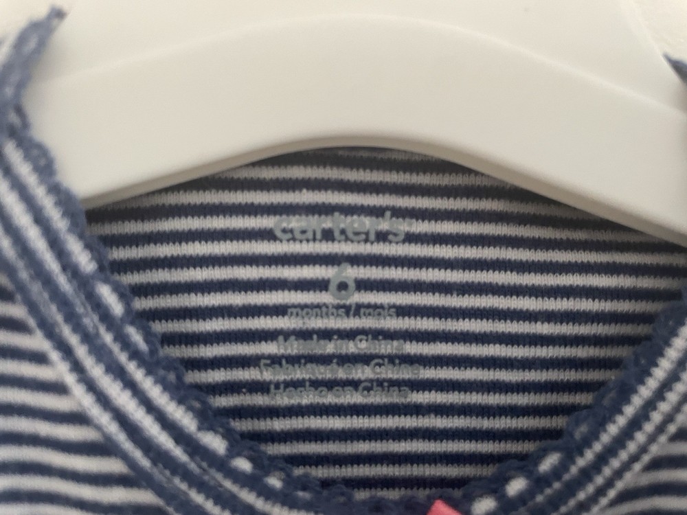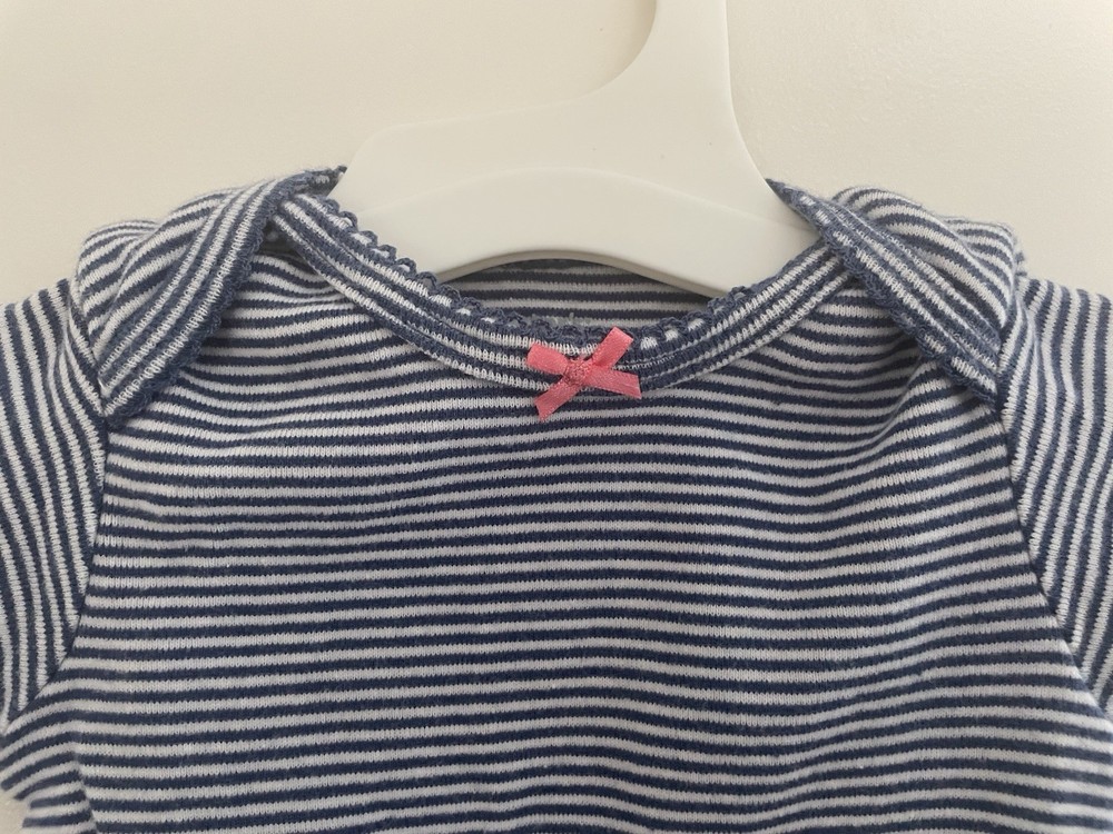 Carter's Baby Girls Striped Pink Bow 100% Cotton Short Sleeve Bodysuit Blue 6M. Condition is pre-owned. Smoke free, pet free home. Shipped via USPS Ground Advantage. In very good condition. Free of rips or stains.
