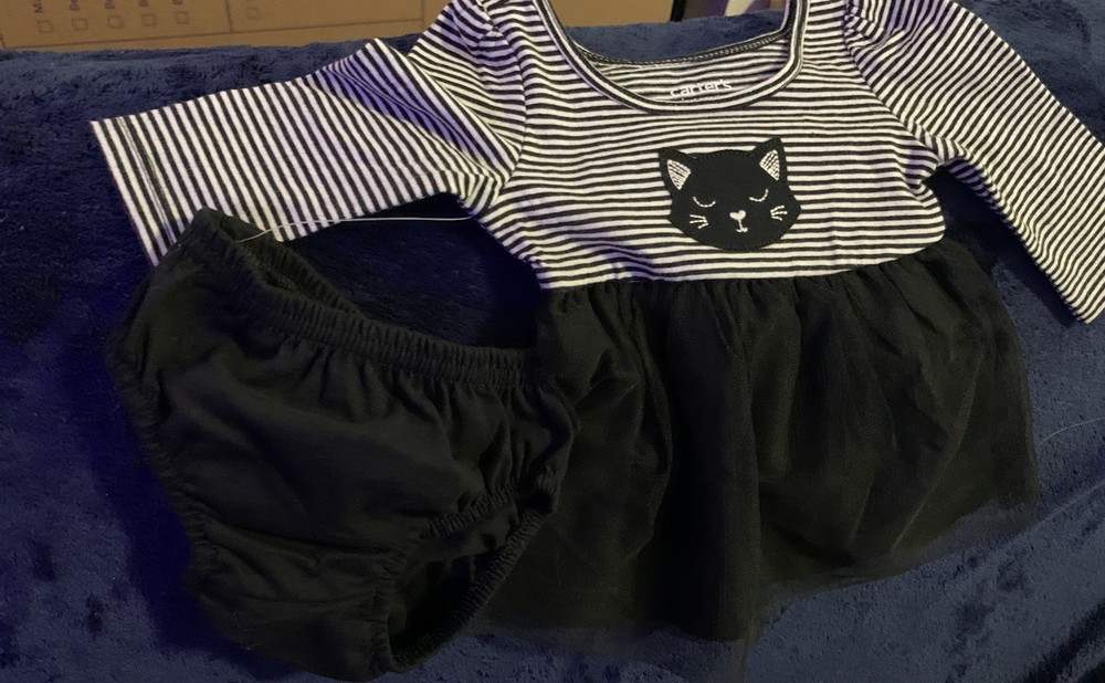 Set Includes: Dress & Diaper Cover Vintage: No Brand: Carter's Handmade: No Type: Outfit/Set Fabric Type: Blended Fabric Pattern: Striped Theme: Cat, Halloween Personalize: No Season: Fall, Summer, Spring, Winter California Prop 65 Warning: unspecified Closure: Pullover Department: Girls Style: Dress Set Garment Care: Machine Washable Sleeve Length: Long Sleeve Character: Black Cat Size: Newborn Occasion: Everyday, Casual, Party Number of Pieces: 2 Piece Color: Black Material: Cotton, Polyester Accents: Tutu Skirt