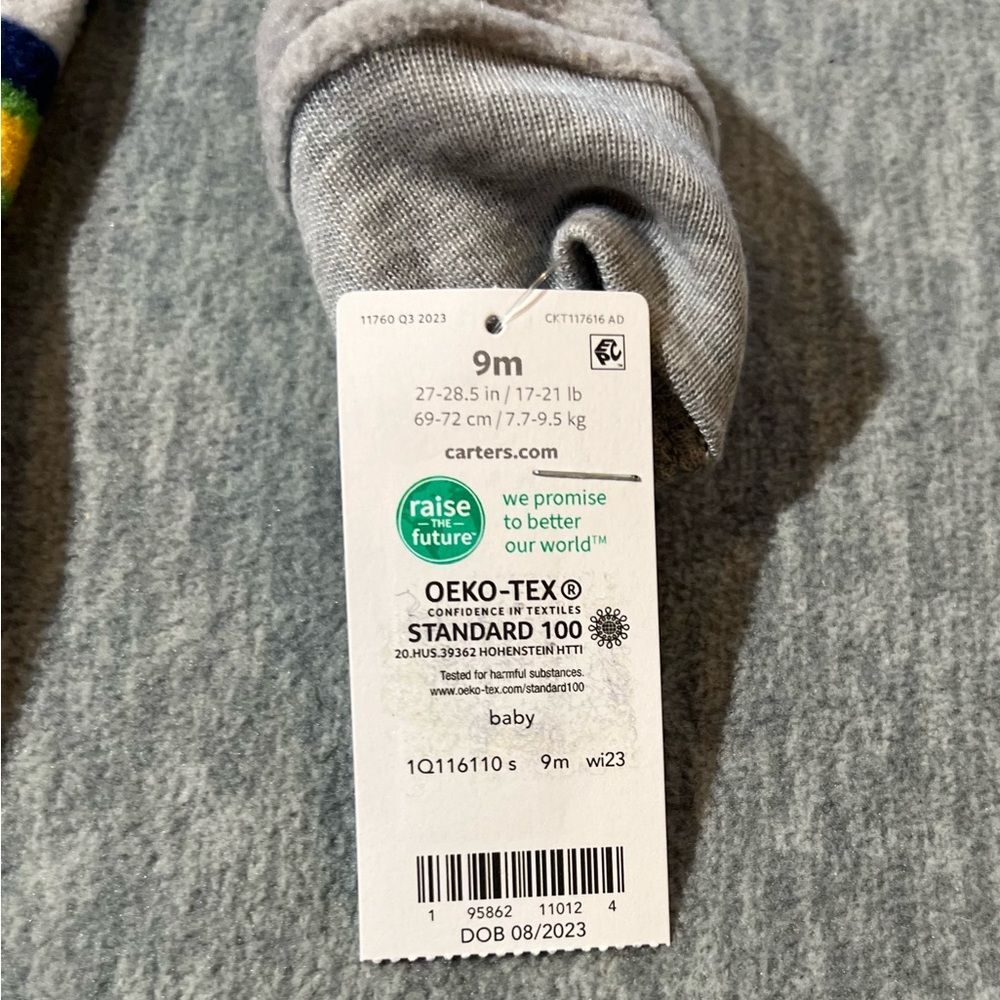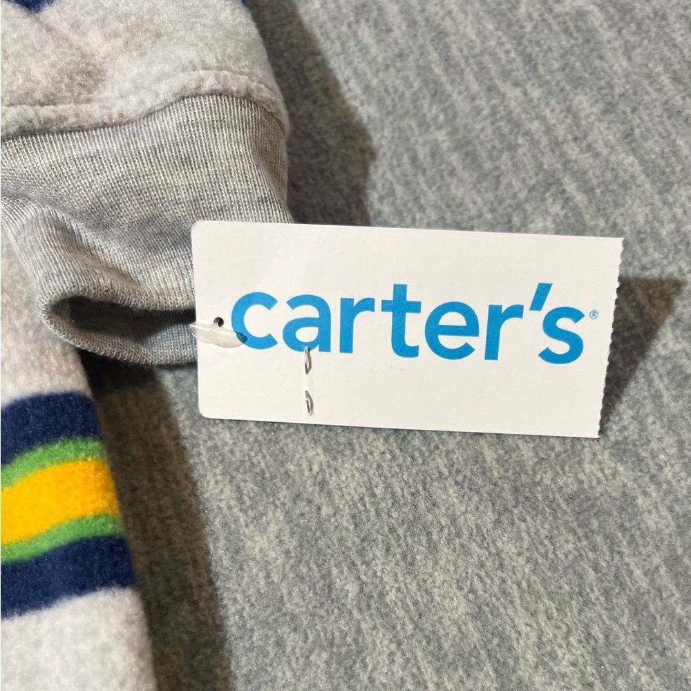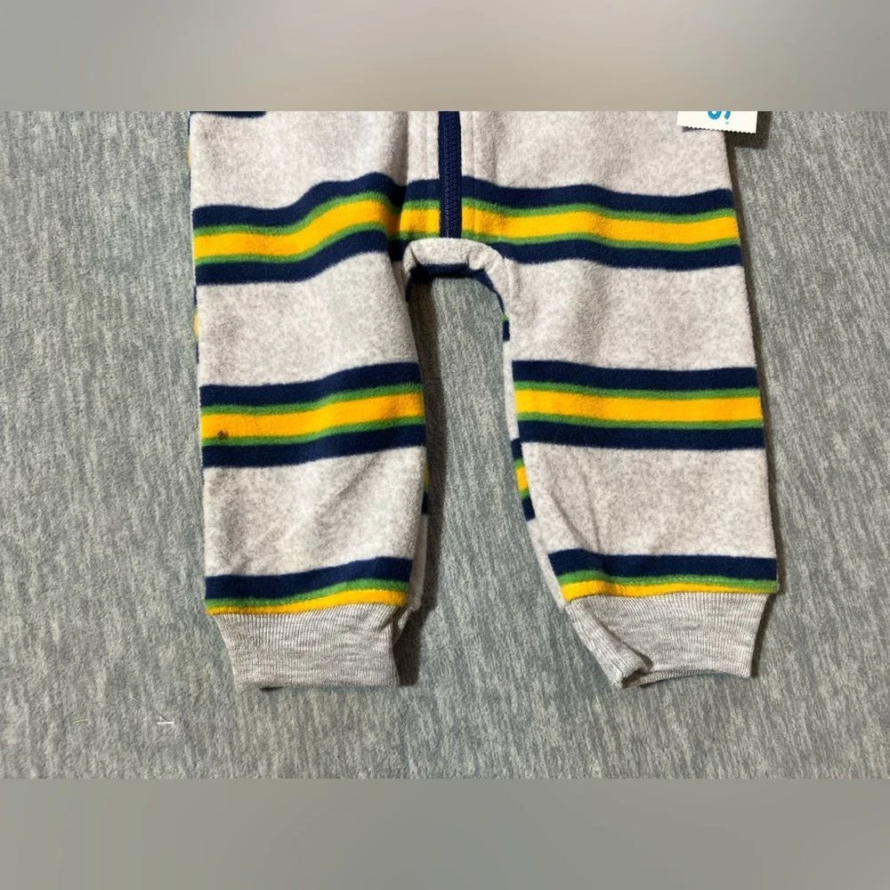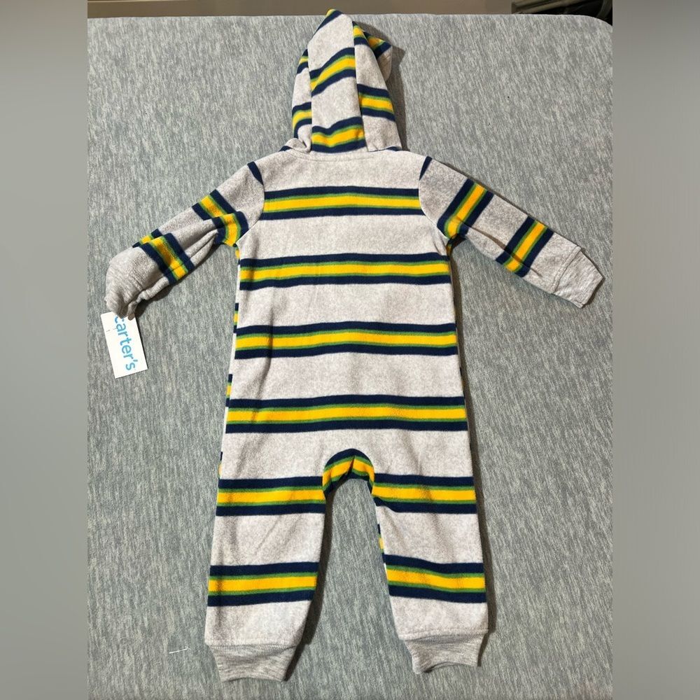 Carter's boys/baby/kids long sleeve fleece zip up hooded romperSoft to the touch, lightweight, zippered with hood-Condition- new with tag/Size-boys/kids- 9 months-Color - Green, navy, yellow, gray Measurements approximately: PTP-inches- 10.5. Overall length- inches- 23 Inseam-inches- 8 Material Content- blend of: 100% polyester My items are primarily thrifted and I do my very best to note any imperfections/callouts. My items are stored in a pet/smoke free home Thanks for stopping in and looking! Lisa
