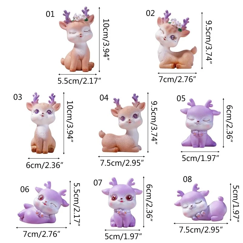 Features: 8 styles for your option: shy/acting innocent/ staring/thinking/ good-looking/enjoyable/sweet dream. Lovely deer shape makes your store, car or home more warm and sweet. This is a for creative exquisitely made decorations for home, restaurant, cafe and hotel. Decorate your home with our standing reindeer, bring happiness to your decor during the Xmas holiday. Also a best for your lover, family and Specifications: resin Size: approx 10x5.5cm/9.5x7cm/9.5x7.5cm/10x6cm/6x5cm/5.5x7cm/6x5cm/5x7.5cm shy/acting innocent/ staring/thinking/ good-looking/enjoyable/sweet dream Package Includes: 1x Figurine Statue note: Please allow 1-3cm error due to manual measurement. pls make sure you do not mind before you bid. Due to the difference between different monitors, the picture may not reflect the actual color of the item.
