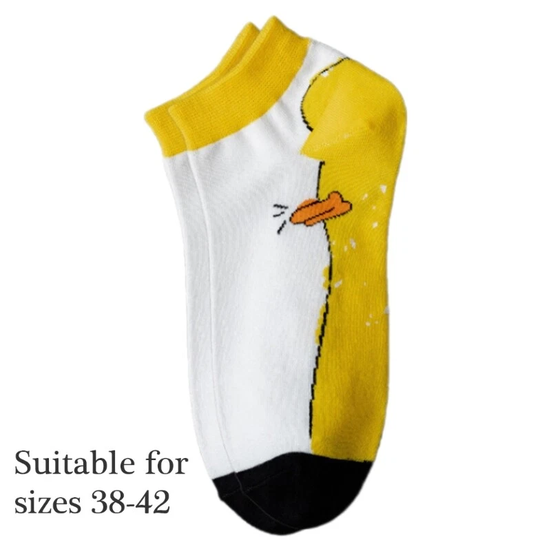 Features: Feature a cartoon duck designs, these low cut socks add a playfully touch to your wardrobe while providing comfort and breathability with cotton fabric. from high elastic cotton, these socks conform perfectly to your foot shape, offering durability and resistance to deformation, with bright color and patterns that remain fade over time. Great for women and teen girls, particularly girls who love cartoon styles and fashion enthusiasts seeking unique expression of personality. Great for daily casual wear, lounging at home, gym workouts, or pairing with casual shoe, these socks showcase individuality and energy in any setting. These women's short socks are to combine styles with functionality, making them a must have accessory for those looking to enhances their sock collection with a touch of fun and charm. Specifications: Component: Cotton Recommended Foot Size: 38-42 Color: Color1,2,3,4,5 Quantity: 1 pair(2pcs) Package Includes: 1 pair(2pcs) Socks note: Please allow 1-3cm error due to manual measurement. please sure you do not mind before you bid. Due to the differences between different monitors, the picture may not reflect the actual color of the item.