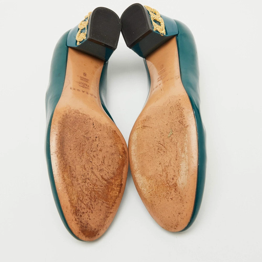 Our eBay Store About Us Contact Us Add to Favorite Sellers Casadei Teal Green Patent Leather Chain Block Heel Round Toe Pumps Size 38 These Casadei pumps are a great choice if you’re looking to add a pair that's both classy and bold. The pair has been made in Italy from green patent leather and set on chain-embellished block heels. Product Details Brand Casadei Color Green Includes The Luxury Closet Packaging Outsole Length 25 cm Outsole Width 8 cm Size US 8 (EU 38/UK 5) Certified by The Luxury Closet This item has gone through a detailed authentication process overseen by our experts. We offer a lifetime guarantee of authenticity on all our items. How We Check The in-house team of experts at The Luxury Closet is highly trained to verify the authenticity and the condition of the luxury products. They ensure that only 100% authentic items are put on sale.The evaluation process is unique with its own mix of assessment criteria and differs according to the category. Each item is evaluated based on the following combination of hallmarks, hardware, stitching, symmetry, material, craftsmanship, stamping, codes, hologram stickers, and packaging. Our authenticators also check if the items have been modified or amended (e.g., aftermarket diamonds, replaced batteries, repaired bags, etc.) International Buyers Import duties, taxes and charges are not included in the item price. These charges are the buyers responsibility. Please check with your country’s customs office to determine what these additional cost will be prior to buying.