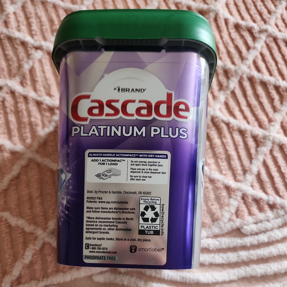 The Cascade Platinum Plus Dishwasher Detergent Pods in Fresh Scent come in an 81-count pack, providing 81-90 loads of cleaning power. These adjustable and portable pods are designed for dishwasher use and are made by the trusted brand Cascade. Each pod is compact, measuring 6.5 inches in length, 7.5 inches in height, and 5 inches in width, making it easy to handle and store. With its Platinum Plus formula, this detergent pod is effective in removing tough stains and odors from dishes, while leaving a fresh scent behind. Made in the United States, this product is a convenient and efficient solution for keeping dishes sparkling clean.