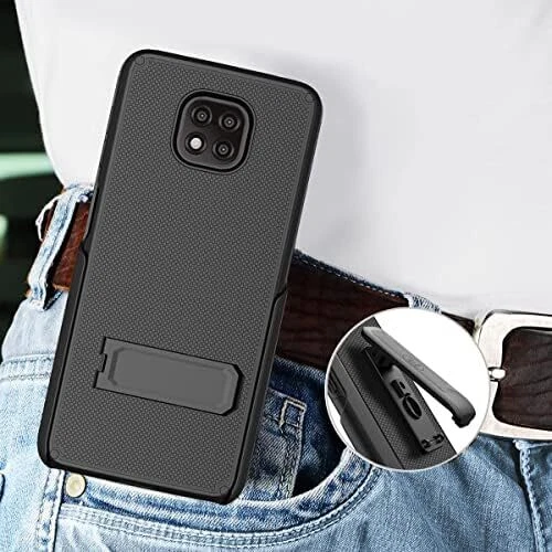 Case Compatible with Motorola Moto G Power 2021. Dual Layer Hybrid Case and Belt Clip Holster Combo Product Description Wireless ProTech Dual Layer Tough Hybrid Case and Belt Clip Holster Combo designed for the Motorola MOTO G POWER 2021 phone (will not fit the 2020 phone model) features a slim profile, open button cutouts for easy access to all functions and controls while protecting against drops, dirt, scrapes and bumps. Dual-material construction made of Hybrid PC hard plastic and soft inner TPU with internal honeycomb pattern for drop protection from the impacts of accidental drops. Securely slide in/slide out your phone from the holster for convenient daily use. Our durable rotating belt clip adjusts 180° for either right and/or left handed use. Holster comes with a locking mechanism to keep your phone locked, safe and in place. Simply insert your phone with the screen facing in, your phone will easily slide right in, locking at the button providing secure nesting. Our case has a built-in kickstand for a hands-free viewing solution with a horizontal angle. Hard shell case and holster with a premium rubberized texture coating gives you added protection and an anti-slip grip. Secure design holster holds phone "Face-In" for optimal screen protection so your display is concealed Integrated card holder within the case. YOUR SATISFACTION IS GUARANTEED: Since 1998 Wireless ProTech has gone to great lengths to provide quality crafted mobile communication solutions for daily or rugged active use. Order with confidence. All Wireless ProTech Products are backed by a 1-year manufacture defect warranty. Order today and see why we are the number one choice for Police, Military, First Responder, Front-Line Workers and Everyday Users.