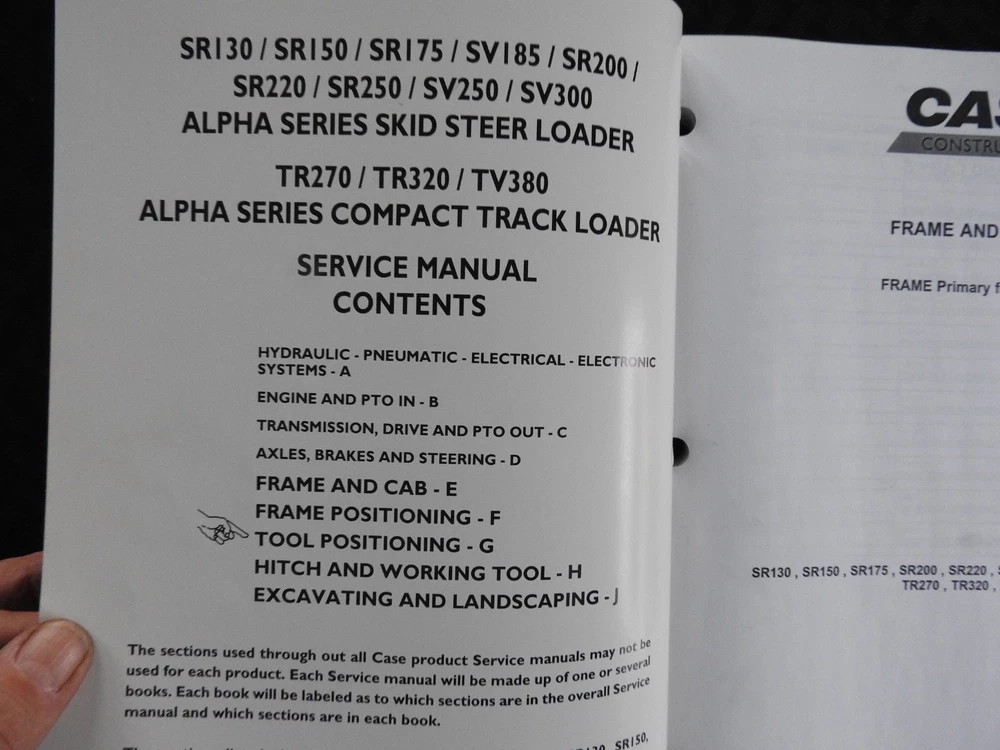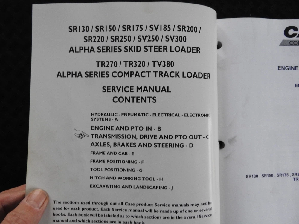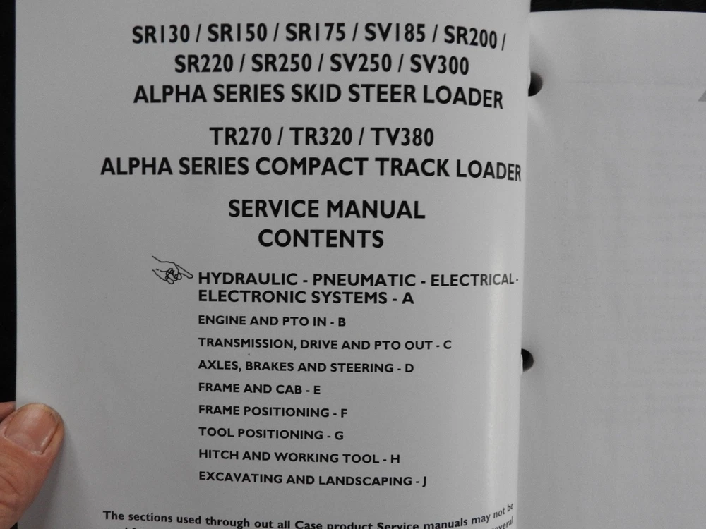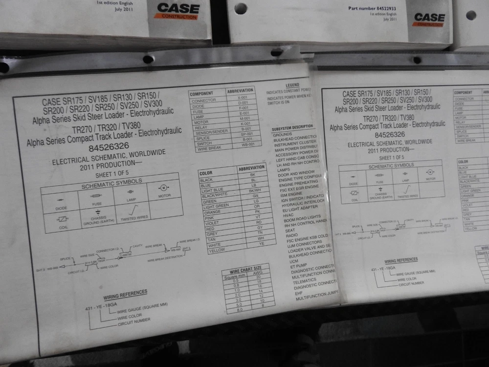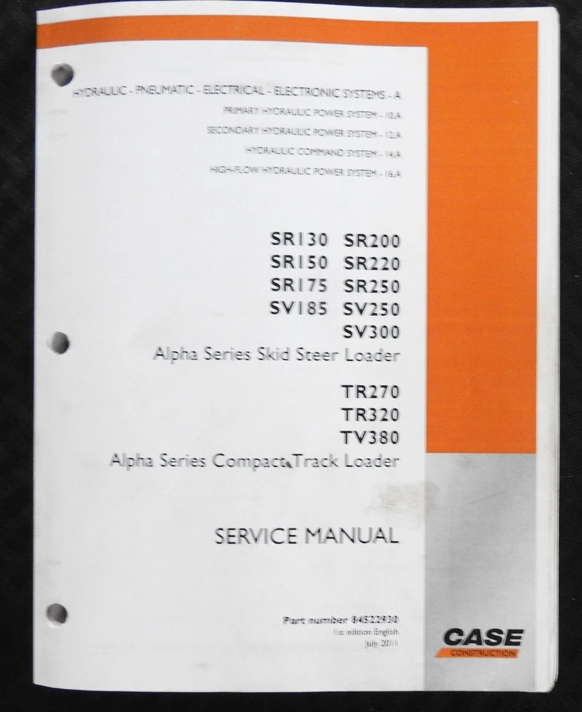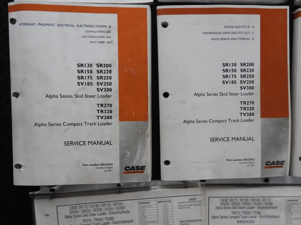 Here we have up for sale an ORIGINAL Case Construction SR130, SR160, SR175, SR220, SR250, SV185, SV250, SV300, TR270, TR320 & TV380 Skid Steer Loader Tractor Repair Manual set (2011 printing) This massive 2-binder set contains super illustrations as well as having in-depth service, maintenance, specifications, and repair information for these tough Case skid loaders. There are many fold-out schematics as well. Set comes in their original binders. Manual set is complete and in nice shape with a few finger smudgies. Manual set is in VERY GOOD+ overall condition. FREE S & H. Thanks for viewing......Triple K