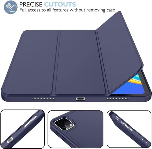 Case for iPad Pro 13 Inch (2024/2025) with Kickstand & Pencil Holder, Dark Blue Compatible with iPad Pro 13 inch (M5) 2025 (A3360, A3361, A3362) and iPad Pro 13 inch (M4) 2024 (A2925, A2926, A3007); check model number on the device bottom. Supports Pencil Pro and Pencil (USB-C) with a magnetic charging side groove and secure magnetic clasp. Features auto wake/sleep function with a powerful magnet for easy on/off and secure closure. Constructed with PU exterior, microfiber lining, and soft TPU back for full protection against shocks, drops, and scratches. Offers dual standing positions for adjustable viewing angles.