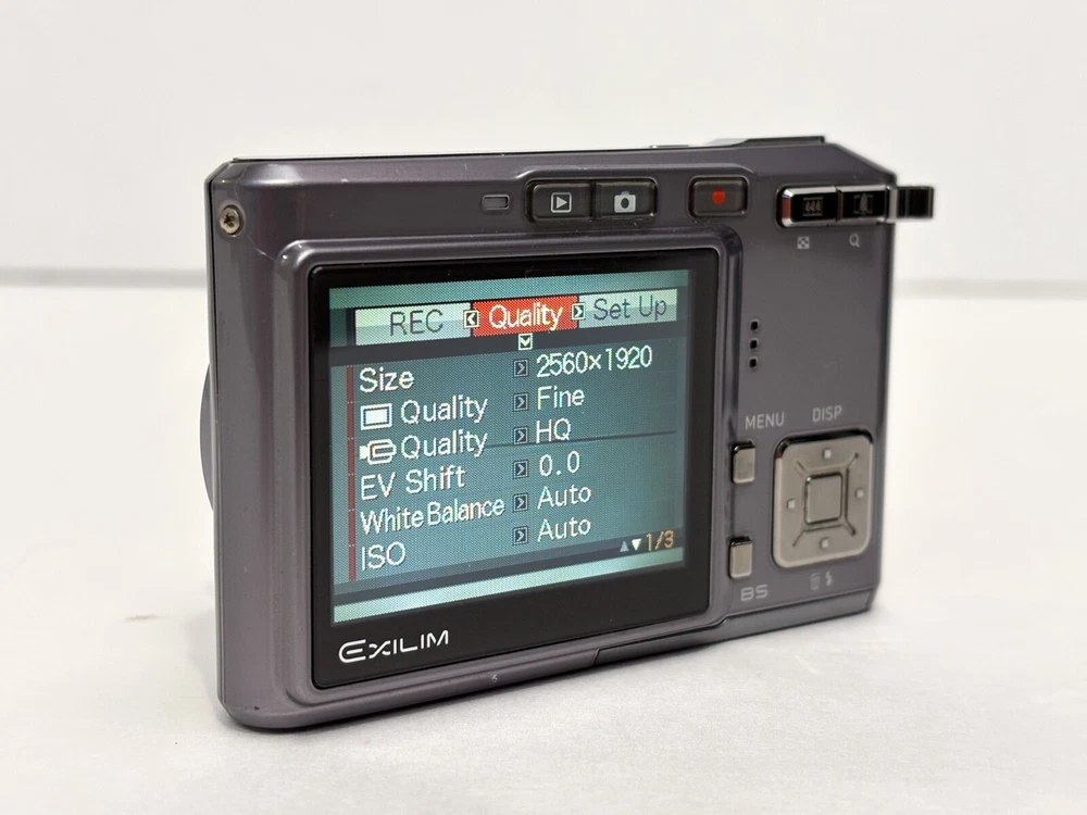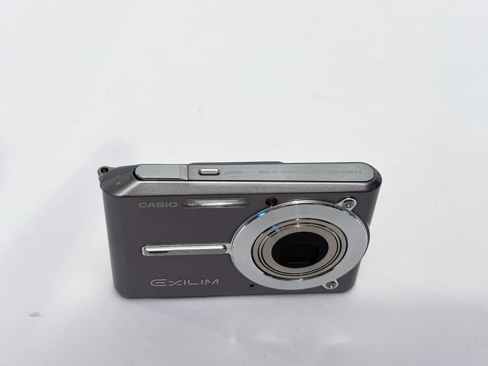 The Casio Exilim EX-S500 is a compact digital camera from the Casio EXILIM series. It features a 5.0 MP maximum resolution with both 3x optical and digital zoom capabilities, all housed in a sleek silver body. This camera includes built-in features such as a speaker, flash, and audio recording functionality, along with an auto power save mode for energy efficiency. Powered by a lithium-ion battery, the camera also comes with a charger and has been tested for functionality. great overall condition - light scratches on screen not visible when on, comes with new battery & Charger