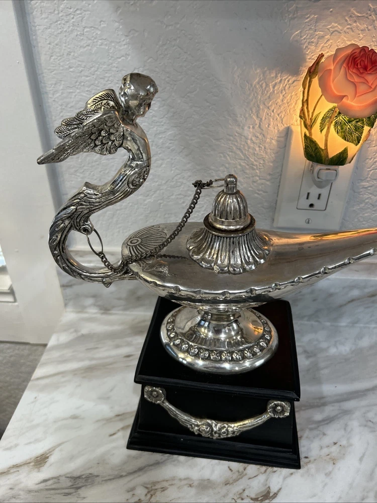 Cast Brass Aladdin Genie Lamp Sculpture. Condition is Used. Shipped with USPS Ground Advantage.
