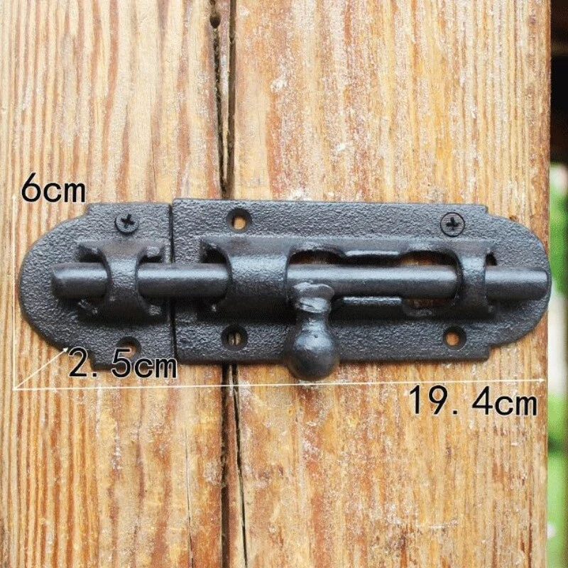 Package Includes: 1 x door bolt , 6 x screws. Cast Iron Barrel Bolt Door Lock Garden Cupboard Sliding Tower Latch Catch Parts Material: cast iron Color: black Size(LxW): 19.4 x 6cm / 7.6 x 2.3 inches SKU: 923-A712 NN