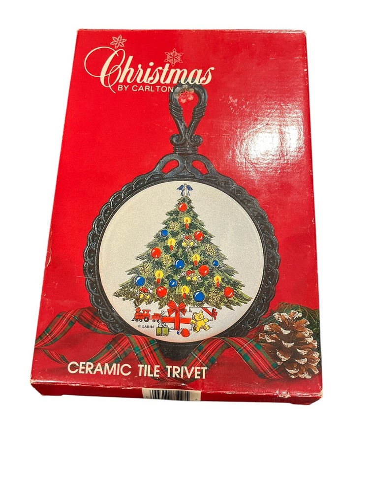 Type:TrivetMaterial:Cast Iron, CeramicOccasion:ChristmasPersonalize:NoMPN:764117Handmade:NoBrand:CarltonCountry of Origin:TaiwanTime Period Manufactured:1980-1989Year Manufactured:1985Color:Multicolor