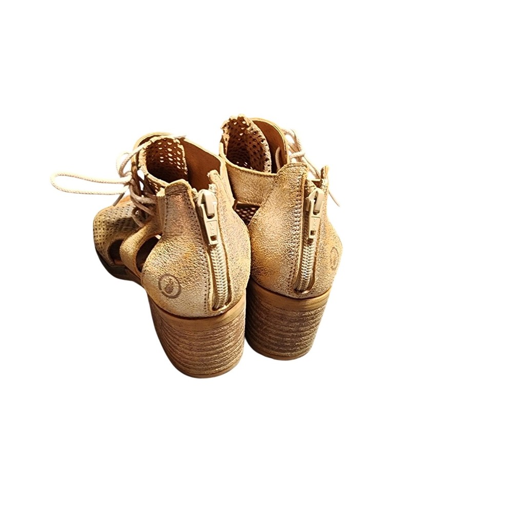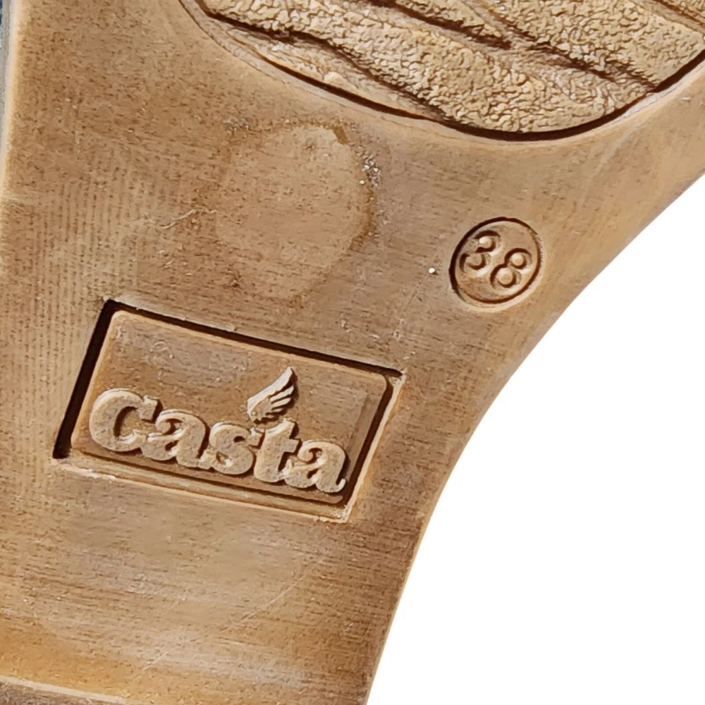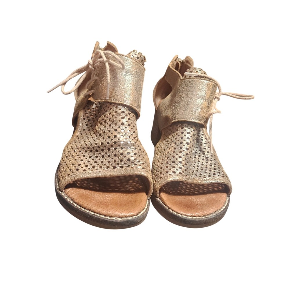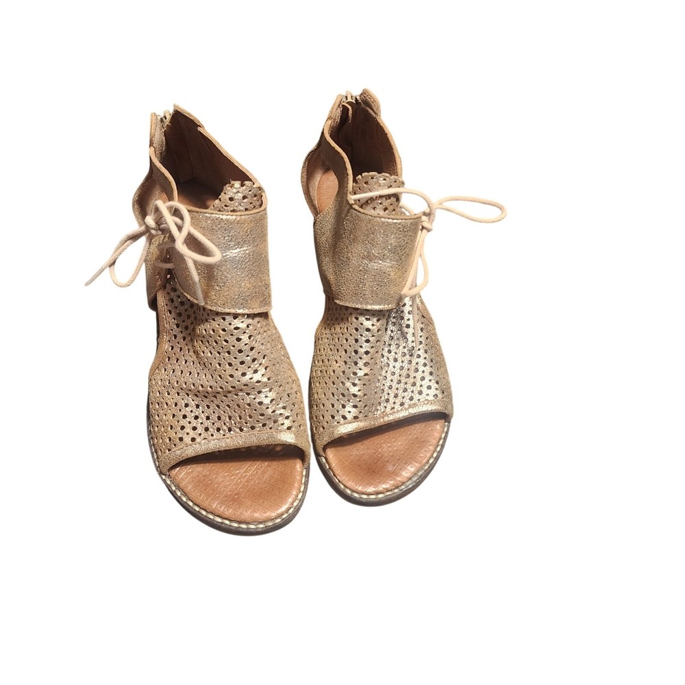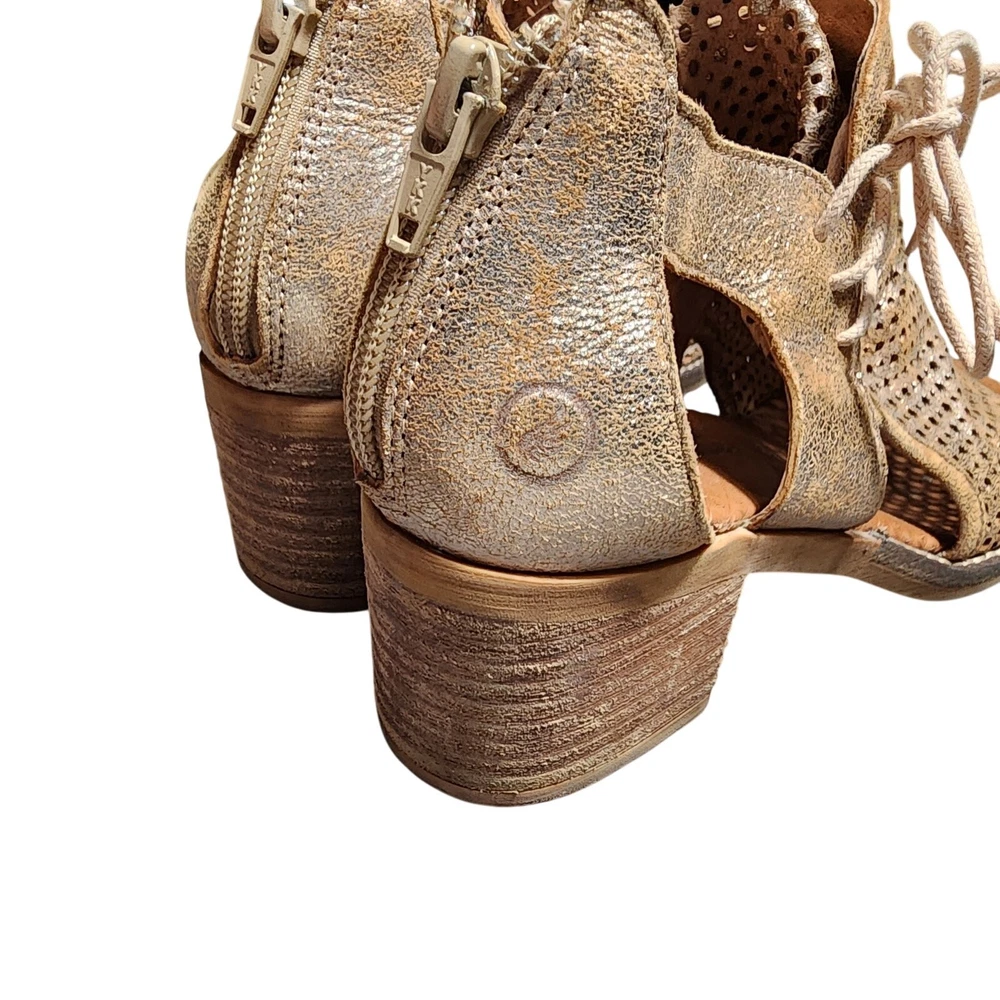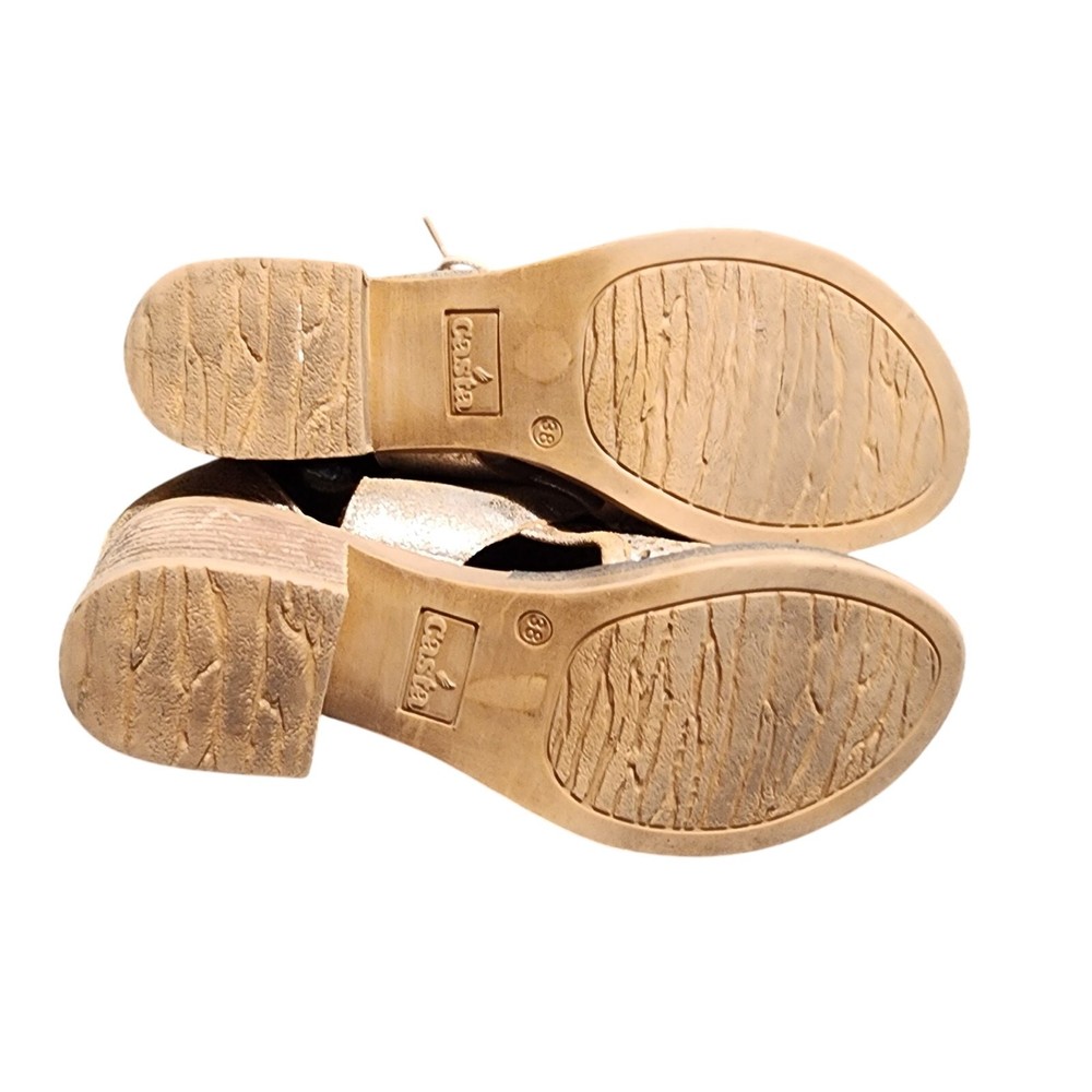 Casta Sz 38 US 7.5 Goldtone Heeled Open Toe Sandals Leather Zip Back EUC Tags: Spring Summer, Preppy, Casual,Rustic