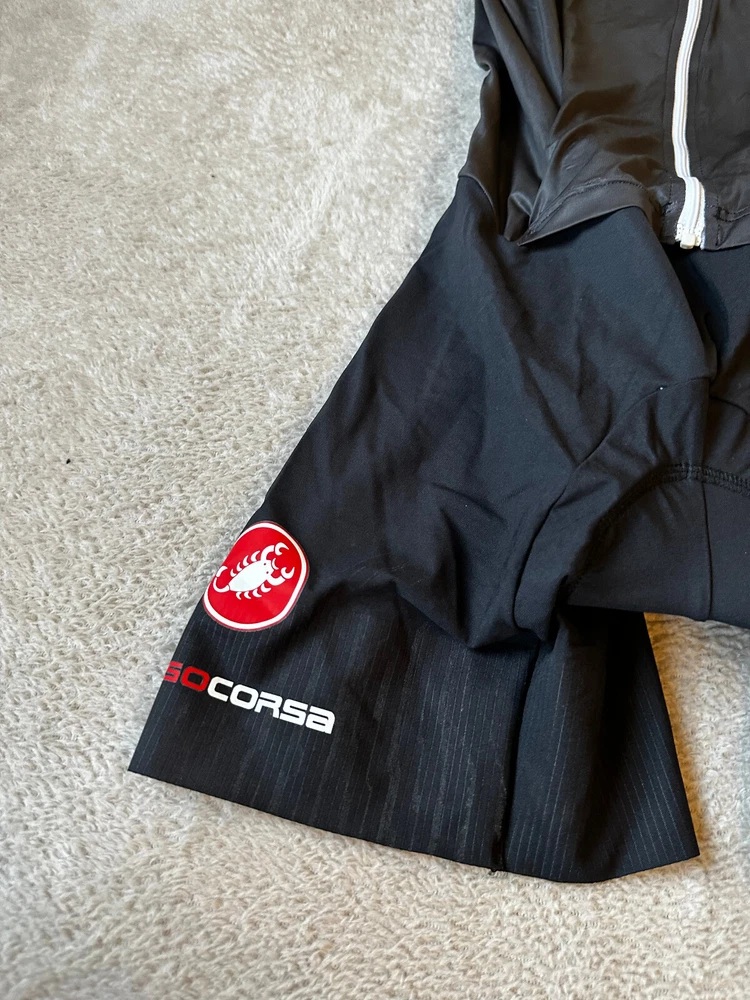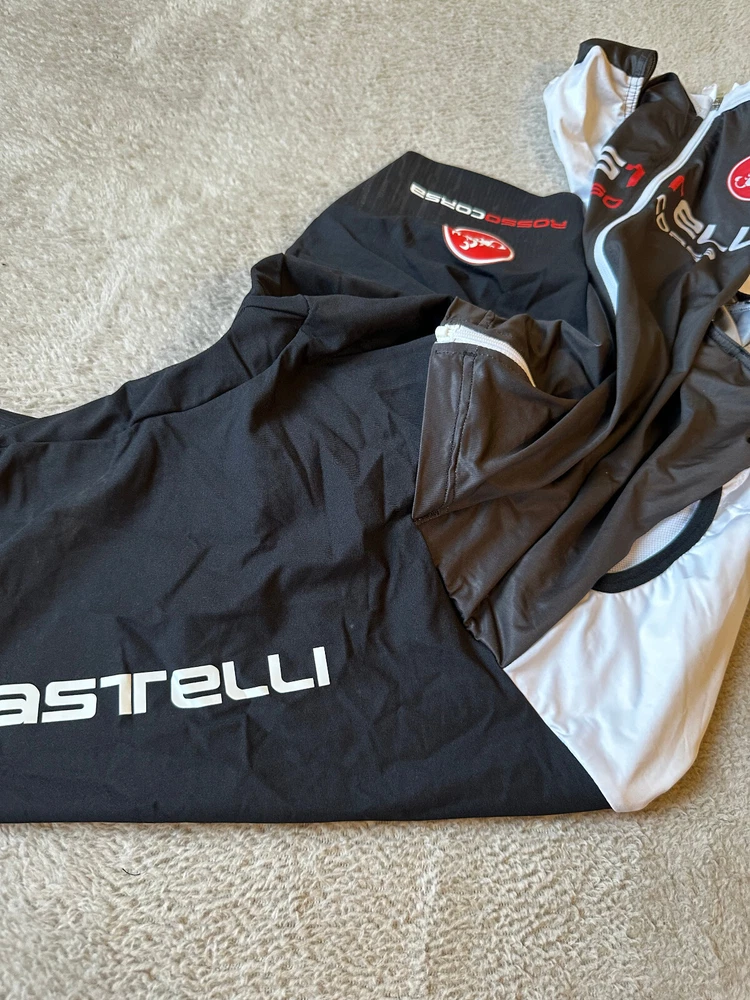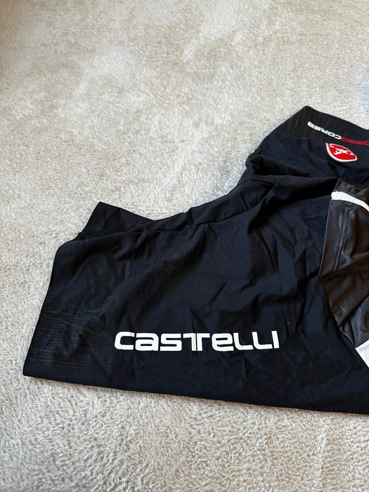 Castelli Body Paint Sr Cycling Tri Suit Sleeveless Black Size L For Men's New! The defect is visible in the photo: Dirty and unstitched zipper all the way. Velocity fabric on upper portion, Body Paint Tri fabric on lower portion One-piece construction with Sanremo front opening Body Paint reduced-seam construction Free large-capacity aero pockets Integrated leg gripper Camlock zipper Kiss Tri Seat pad. Castelli has combined the Body Paint Tri Short with the Body paint Tri top to make the Castelli Body Paint Sr Tri Suit Sleeveless whose one-piece nearly seamless construction is incredibly comfortable and aerodynamic. Water is barely absorbed in the entire tri-suit which makes it perfect for the swim because you stay light in the water and you dry exceptionally quickly on the bike leg. The upper end is made with stretchy Velocity fabric which is not only highly aerodynamic it also dissipates body heat to help keep you cool. The lower portion, made with the Body Paint Tri fabric, compresses the legs to keep the cycling short portion in position whether you are riding your bike, running or swimming. The compression also helps to increase circulation which improves recovery time. The Sanremo front opening lies flat. When you need some cool air, it is easy to open the top while in motion. The leg gripper, with seams integrated into the fabric, keeps the shorts in place without pinching the legs, another factor that enhances comfort. The Kiss Tri seat pad has been designed specifically for comfort in the aero-position. The multi-layered padding in the right places makes it barely noticeable in the run and the swim. I accept combined sending, if you have any questions look forward to your messages. The clothes are new, 100% original. Clothes may be with minimal defects, they are slightly visible or not visible at all. If you need more photos, write.