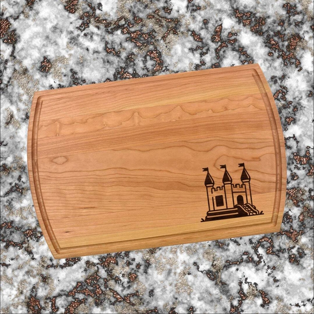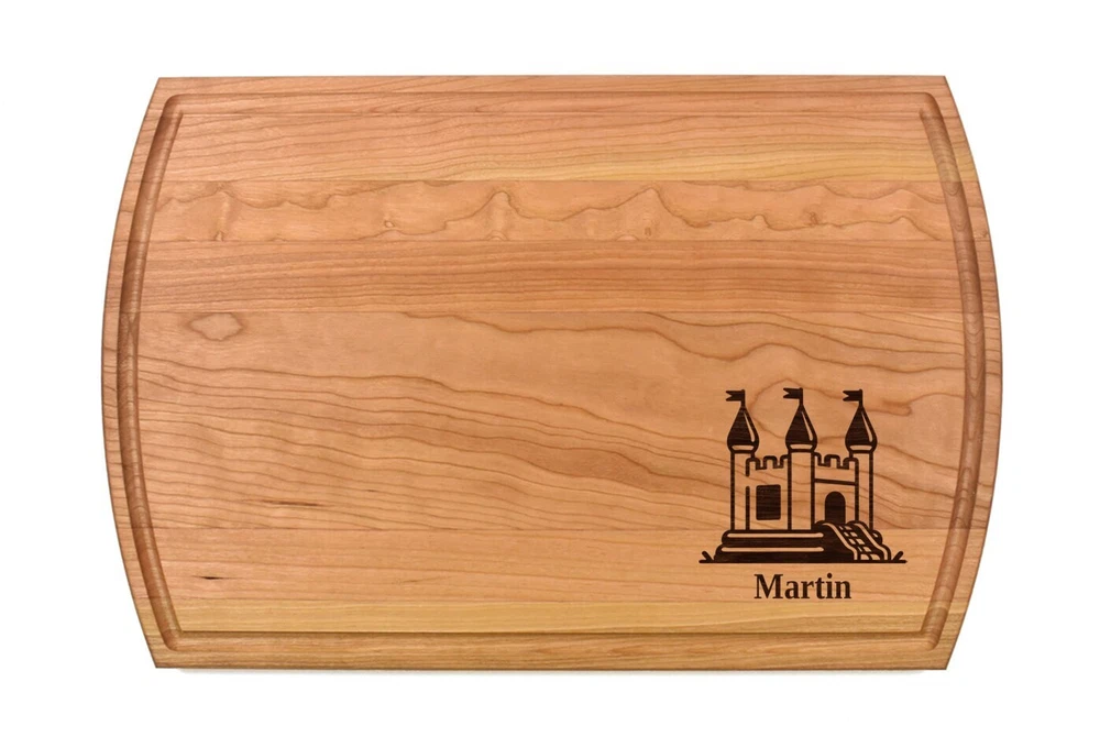 Design: Personalized Castle Cutting Board or Charcuterie Serving Tray All items ship via USPS - please make sure your address is correct :-) Whether used as a charcuterie serving tray for snacks or cutting board, our bamboo, walnut and cherry custom boards are the perfect addition for the home and make the perfect gift for your loved one celebrating a birthday, anniversary, new home, wedding, etc! *** FEATURES *** • SIZES: We have multiple styles and sizes available. To see our current sizes available, click the drop-down menu. The photo slide contains a photo showing each side by side. Please note, the board with the juice groove only has the groove on the front side of the board. • THICKNESS: Bamboo Boards - Approximately 1/2" Thick; Walnut & Cherry Boards - Approximately 3/4” Thick • UNIQUE: Every board is unique with the grain and coloring varying throughout - no board is the same! • CARE INSTRUCTIONS: Hand wash only with warm water. Do not soak. Please apply mineral oil throughout the board’s life. • PERSONALIZATION/CUSTIMIZATION: Do you want the text placed differently on the board? Please don’t hesitate to contact us. All personalization notes can be entered in the personalization box when checking out. • SHIPPING: All cutting boards ship within 2 to 5 business days. • WHOLESALE ORDERS: Please don’t hesitate to contact us for information about wholesale orders. Processing times for larger orders may change. • NOTE: Colors can vary a bit on different monitors and screens. Any props included in photos are not included. Please be sure to double-check your address to make sure it is accurate for USPS delivery. If a package is returned to us due to an invalid address, the buyer is responsible for all additional shipping charges. We appreciate you supporting small business – best wishes! For items ordered with simple edits, we do not send proofs since the layout doesn't change from the example(s). However, in the event there are requests that change the layout from the example(s), we do send proofs for approval before making the product. If you'd like a proof before we make the product, please note so in the personalization box.