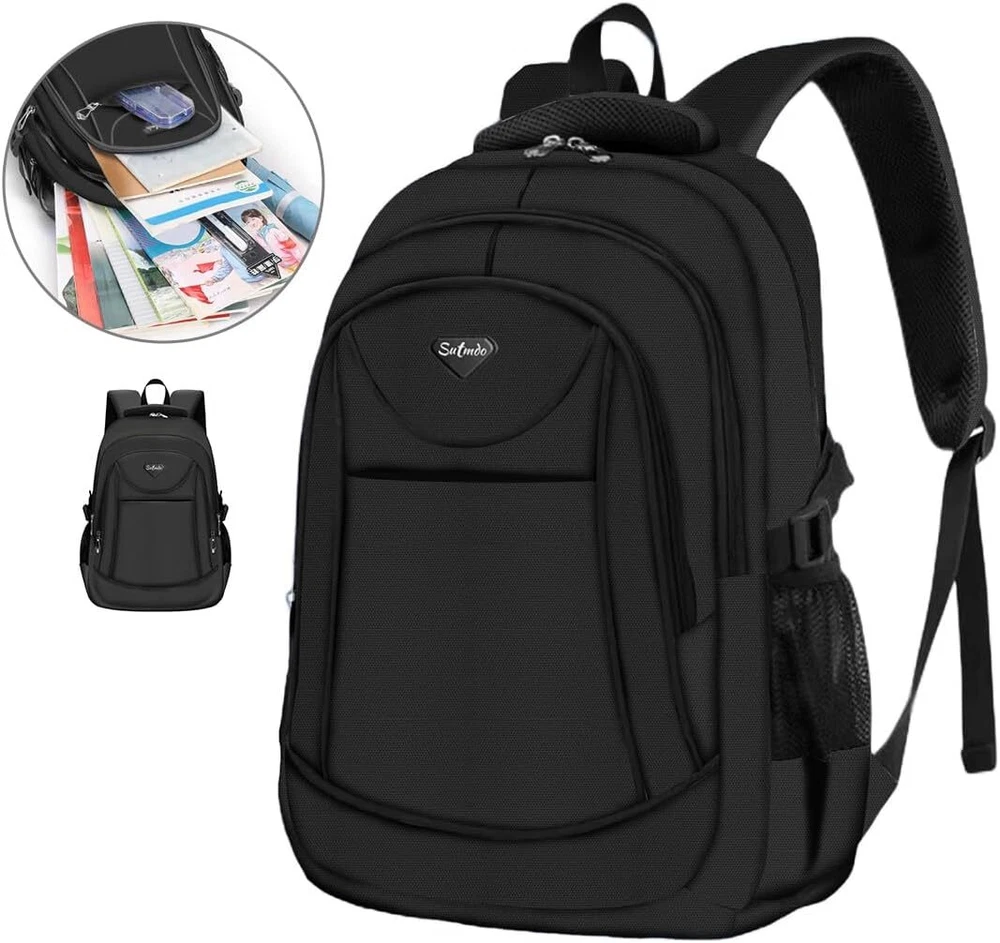 Casual Lightweight Backpacks for Boys & Girls, School Bookbags, 15 211hei Product Details Product Dimensions: 2 x 2 x 2 inches Item Weight: 1.19 pounds Department: Unisex Child Manufacturer: 211 Country of Origin: China Item model number: 211 Age Range Description: Kid Number Of Items: 1 Units: 1 Count Capacity Total: 2 Liters Material:Waterproof lightweight anti-scratch soft polyester, nylon lining, breathable mesh back panel, smooth dual metal zippers. The zipper of main compartment with double metal sliders and metal sliders have rope, easy to closed Interior Structure: 19" x 12" x 7" (Length*width*high), weight:1.2LB. 2*side pockets, 2*front pocket, 1*inner zipper pocket, 2*inner organizer pockets, 1* laptop/tablet compartment Lightweight: The backpack is made of durable water-resistant polyester which is lightweight and easy to clean. The adjustable padded shoulder straps offer support and comfort while the adjustable chest strap stabilizes the load throughout the day's activities. Large Capacity: This backpack Easily fits a lunch box, extra clothing, books,snacks, and small treasures; Nice gift for your friends, classmates and others, ages three and above Sutmdo is the brand for the active and casual. With the motto to keep things simple and neat Sutmdo offers an assortment of accessories and bags for everyday use. We seek to deliver premium quality designs. The Sutmdo classic unisex school backpacks are made of superior quality polyester. Polyester is the popular and ideal lightweight material for ultra-strong and heavy duty backpacks. Polyester material is heat resistant, making it suitable for outdoor use. In terms of durability, polyester is resistant to shrinking and stretching. Thus, it is also wrinkle-resistant. Polyester is genuinely a resilient material perfect for backpacking. Reinforced bottom and high detailing. This ensures that the base of the school backpack is durably covered. The added reinforcement protects the backpack.Suitable for ages three and above