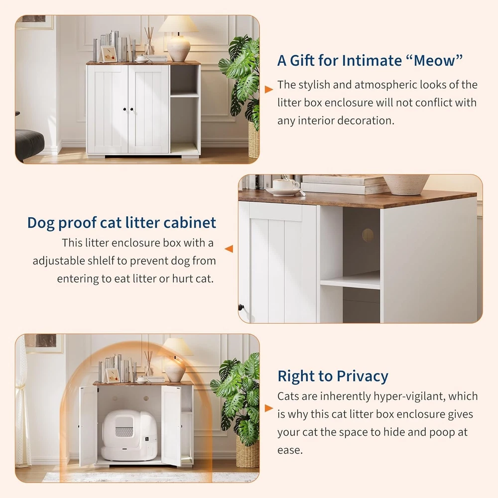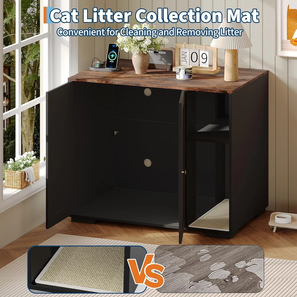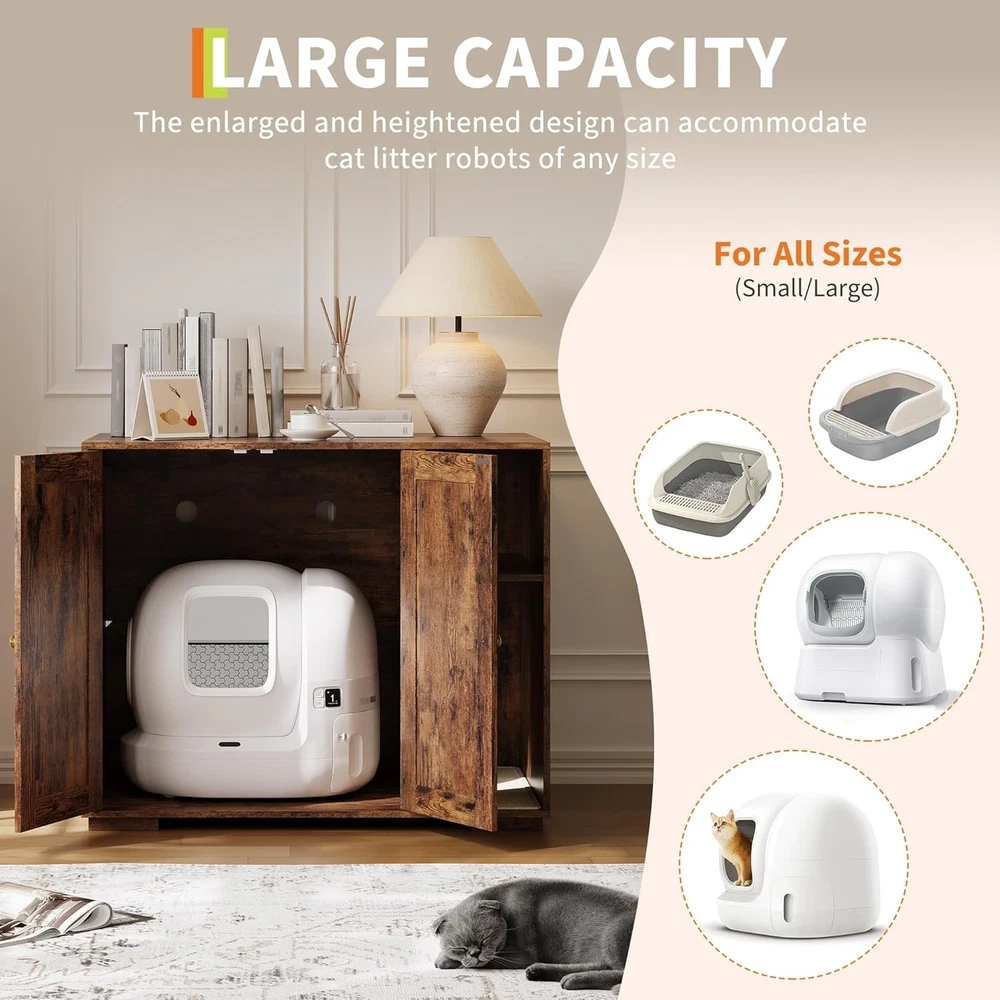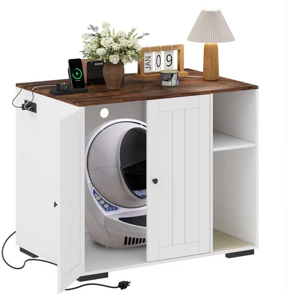 Specifications: Mounting Type:Floor Mount Included Components:instruction manual Power Cord Length:4.9 ft Features: Litter Furniture for Litter Robot 3/4: With interior size of 27.75 in L x 24.8 in W x 30.3 in H, our litter robot enclosure is designed for automatic litter boxes like the Litter Robot 3/4 (up to 30 in high), fits most standard and automatic litter boxes and perfectly hidden litter machine. Built-in Charging Station: Equipped with 2 AC outlets and 2 USB ports, this front entry cat litter box furniture makes it easy to power up your phone or pet gadgets. Enjoy convenience and a clutter-free space with this decorative litter box cabinet. Dog-Proof Shelf Design: Worried about your dog accidentally entering the litter box? Our Litter Robot cabinet features built-in shelves to effectively keep your dog out and provide a safe and private space for your cat. It also serves as a storage rack for cat food and other supplies. Removable Litter Mat and Excellent Ventilation: The removable litter mat at the entrance effectively prevents litter from spilling when your cat enters and exits, keeping your floor clean. To create an odor-free home environment, we've drilled multiple holes in the back for increased breathability and ventilation. Stylish and Elegant: The Litter Robot enclosure features a sleek and elegant finish. Blends in perfectly with your home decor while cleverly concealing the litter box. Payment Delivery Returns Feedback We accept Payoneer only. All major credit cards are accepted through secure payment processor PayPal. Payment must be received within 7 business days of auction closing. If you have bought multiple items from me, you can send me one payment for all the items instead of paying for them individually. When you click the Pay Now button, eBay will automatically determine if there are other items you have won or purchased from me and will combine them for your review. NOTE: Import duties, taxes and chargers are not included in the item price or shipping charges. These charges are the buyer's responsibility. Please check with your country's customs office to determine what these additional costs will be prior to bidding buying. 1. We will delivery out at the handing time when we receive the payment. 2. The delivery time is 3-5 business days to US by usually time.The parcel maybe delay 1-2day of the weekend.Due to the bad weather,Holidays,Hot Season ect.the parcel maybe delay,If you have any problems,mssage us,we will try our best to solve it. 3. We ship to your eBay address. Please make sure your eBay address is correct before you pay. 4. If you want to change the shipping address,message us before our send out. 5. We cannot deliver your order if your state is PR. 1. If you donot receive the items at the delivery time,the parcel has broken/missing,Please message us before you open case/return,we will try our best to solve it. 2. We offer a 30 day return policy from checkout winning date. 3. An RMA number is required for all returns. Message us for return instructions. Items Returned without a RMA number will not be processed. 4. Items defective upon receipt must be packaged in their retail packaging as if new and returned with a detailed description of the problem. 5. Return shipping fees are not refundable.We reserve the right to decline any returns if the above guidelines are not followed. If you are not satisfied with the item for any reason, please do not quick to leave negative/neutral feedback even open request and case without any communication with us. We devote ourselves making EVERY CUSTOMER in 100% Satisfactory and resolve any problem. Thank you for your understanding and recognition,we are always leave positive feedback to all our customers. About Reply: All replies will be sent to your email box, if you do not get response within 24 hours (Sat. & Sun. excluded) please check your eBay My Messages in case that our emails will be filtered automatically by your settings.