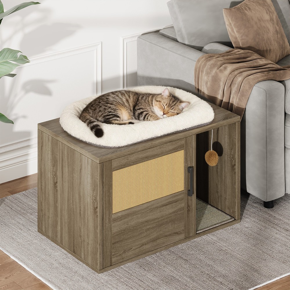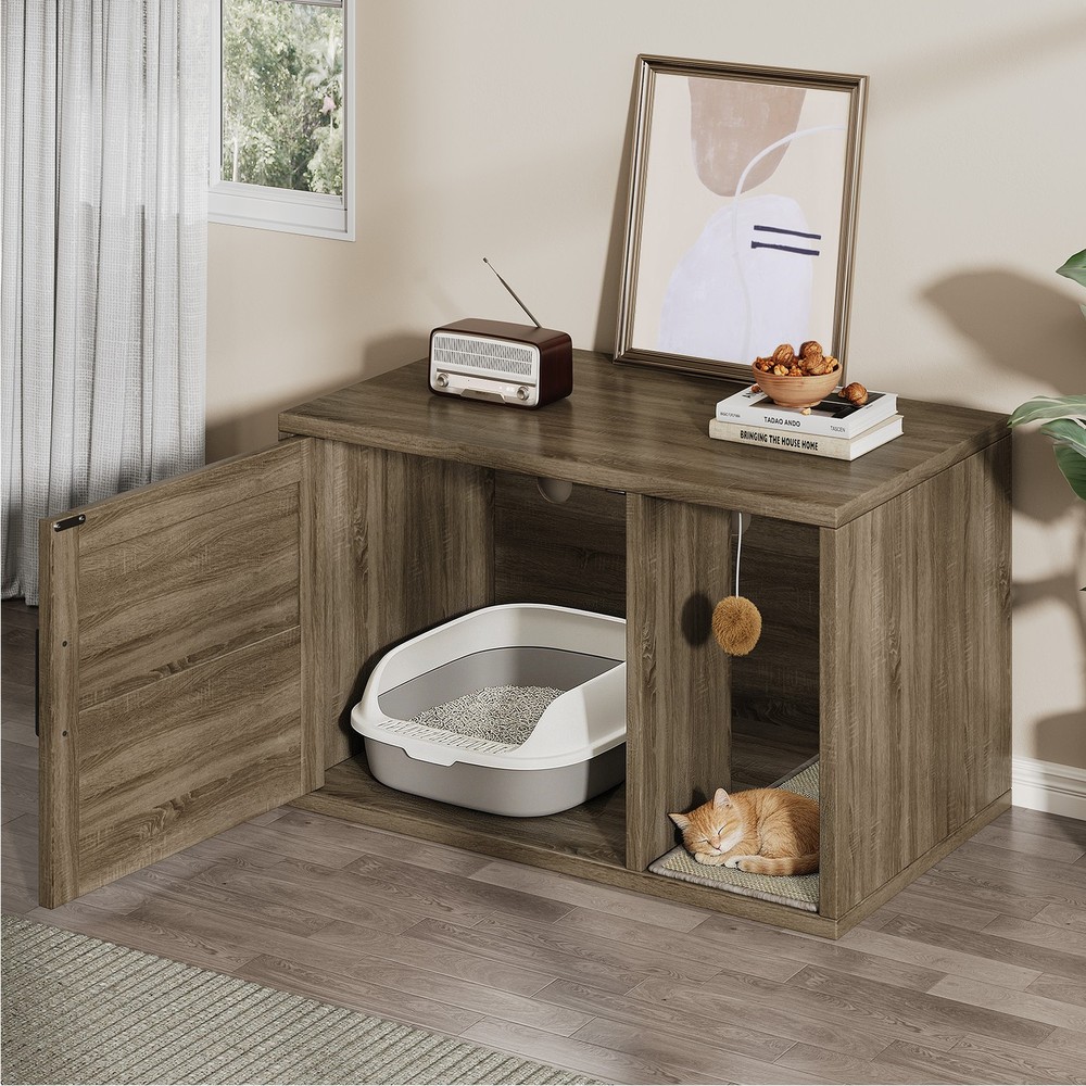 $ 11.09Easy Assembly Cat Litter Box Cabinet 47.2x18.5x19.7in Two Vents Greige Tone