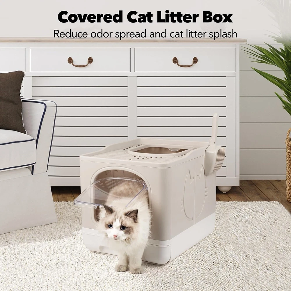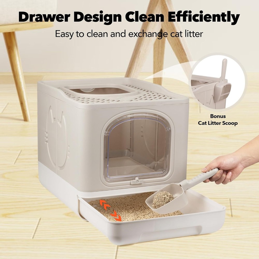 $ 171.05Cat Litter Box, Large Covered Litter Box for Cats with Drawer Kitty Litter Pan