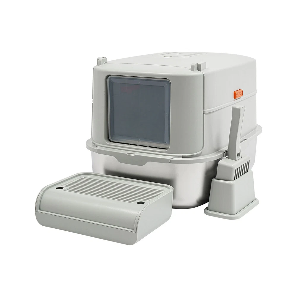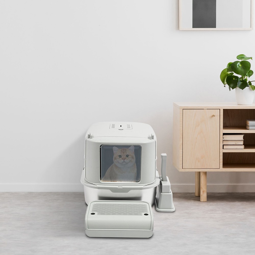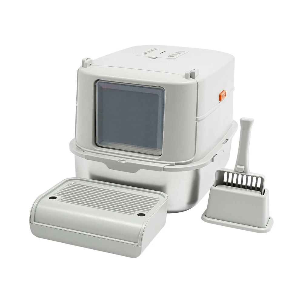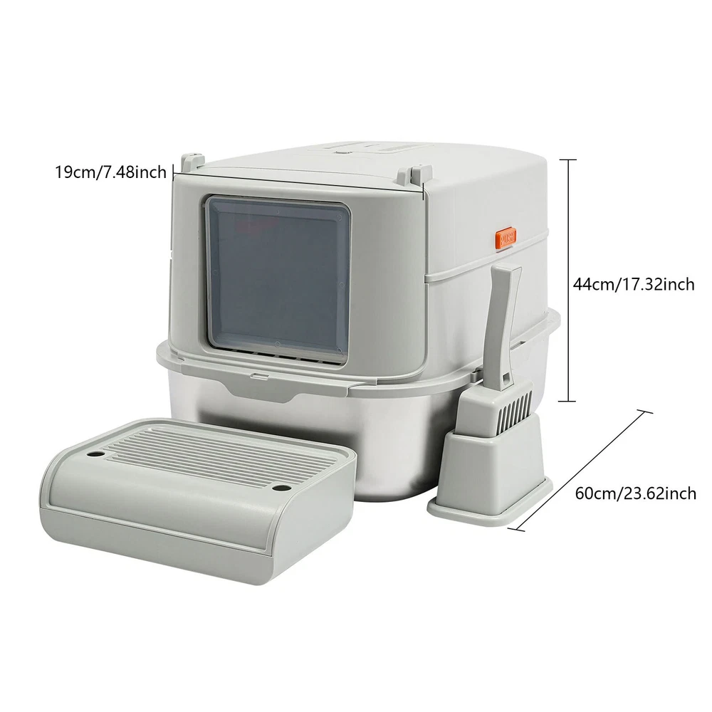 Cat Litter Box Large Litter Box for Big Cats Cat Litter Box with High Sides Description Description Are you looking for a cat litter box that can provide a comfortable and convenient experience for your cat? Then do not miss this! Its large capacity not only provides your cat with a spacious interior but also relieves your daily cleaning chores. Take it home now and enhance your cat's toilet experience! Key Features Last for Years: Made of excellent stainless steel , PP, and ABS, it is rustproof, wear-resistant, and impact-resistant, with a strong load-bearing capacity and high durability, not easy to deform, to ensure your long-term use. Large Capacity: The large 18.16-quart capacity litter pan allows you to add a large amount of litter at one time, which will last your cat roughly 30 days, effectively reducing the number of times you have to add litter and giving you peace of mind when you leave the house. Thoughtful Design: The built-in inverted plate and unique snap design with overlapping edges effectively prevent urine from leaking through the cracks, and also solve the problem of scattering cat poop when your cat digs. A sturdy 4.72-inch high-sided middle shell and a 5.12-inch top cover can 360° protection against litter splatter. An anti-splash pedal also prevents litter from being carried out by your cat and it features a raised design, making it ideal for short-legged and senior cats. User Friendly: It features an easy-to-assemble, 3-tier removable structure and is available in fully enclosed and semi-enclosed configurations. The fully enclosed setup prevents the spread of odors, effectively stops urine leaks, and provides privacy for your cat. The enclosed setup promotes ventilation, making it easier for you to clean. It features a deodorizing compartment for a bamboo charcoal bag (not included) to quickly absorb odors. Effortless Cleaning: The stainless steel litter pan's simple design makes it easy to rinse with water. In addition, the litter scoop allows you to scoop away cat poop quickly and easily. The inside of the footrest can hold a litter bag (not included), making it easy to remove loose litter and keep your floors clean and tidy. Assembly in a Breeze : The simple structure, complete accessories, and detailed English manual help you to assemble it quickly and firmly without easily falling off. Elegant Appearance: With a light gray cover and a silver basin, the overall look is low-key and stylish, adding elegance to home decoration. Multifunctional: The stainless steel pan has sturdy construction and seamless design, which is not easy to break and leak, so you can use it as a cat's bathtub, saving you money and time on additional purchases. Ideal Gift: Beautiful appearance and good practicality make it a great gift. You can give it to your family, friends, colleagues, etc. who have a cat. Customer Service: We aim to provide quality products and services. If you have any problems, please feel free to contact us. We will reply and solve the problem for you as soon as possible. Details Non-slip Pads: They can hold the litter box stable on the floor and prevent it from shifting and scratching the floor. Shovel Box: It allows you to store the cat litter scoop after each use while making it quicker and easier to access next time. Practical Cat Litter Scoop: It can be hung on the litter box for easy access and to avoid loss. It has a fine mesh structure so that even the smallest cat litter particles can be easily removed without falling through. Smooth Edges: The smooth and round edges make the product comfortable to use without scratching your cat's skin during her toilet or your hands when you move it. Application It is suitable for cats up to 22.05 pounds and you can place it in your living room, balcony, bathroom, pet store, and other places for use. Specification Color: Light Grey, Silver Style: Modern Assembly Required: Yes Mount Type: Freestanding Material: Stainless Steel, PP, ABS Capacity: 20L/ 18.16Qt Applicable Cat Weight: Below 10kg/ 22.05lbs Pan Size: 58*43.2*15cm/22.83*17*5.91in Medium Shell Height: 12cm/4.72in Top Cover Height: 13cm/5.12in Inlet Height: 20cm/7.87in Package Size: 60*44*19cm/23.62*17.32*7.48in Gross Weight: 4.8kg/10.58lbs Net weight: 4.56kg/10.05lbs Package Included 1* Stainless Steel Pan 1* Footboard 1* Top Cover 1* Medium Shell 1* Cat Litter Scoop 1* Non-slip Foot Pad Sticker 1* Shovel Box 1* English User Manual Notes Please check the style and size before purchasing. Please read the manual completely before installation and use, and pay particular attention to the safety instructions included. Please note that cat litter is not included in this product. After use, please replace the cat litter promptly. If there are multiple cats at home, the replacement cycle for cat litter can be proportionally shortened, with one cat taking about 30 days and two cats taking about 15 days. Regularly add cat litter to the pan, keeping the litter thickness at around 30-40mm. Please allow the slight color difference caused by the shooting light and 1-3cm error due to manual measurement and make sure you do not mind before ordering. Payment Delivery details Terms of sales About us Contact us Payment We accept ebay payment 。 Fees such as import duties, taxes are not included in the item price or shipping costs. These charges are the buyer's responsibility. Delivery details Shipping: 2-9 working days to: USA Terms of sales We maintain high standards of excellence and strive for hundred percent customer satisfaction. Feedback is very important to us. We hope that you contact us immediately before you give neutral or negative feedback, so that we can address your concerns. It is impossible to address issues if we do not know about them! About us Your satis faction is our ultimate goal. We work hard to earn your trust and future business. Our certified technicians have tested each item before shipping. The unit comes with 1 year limited warranty on all manufactur
