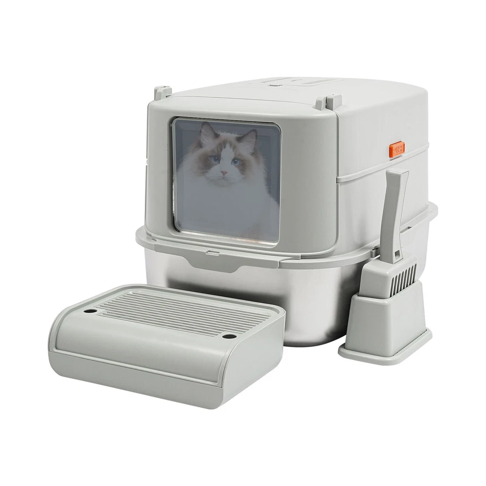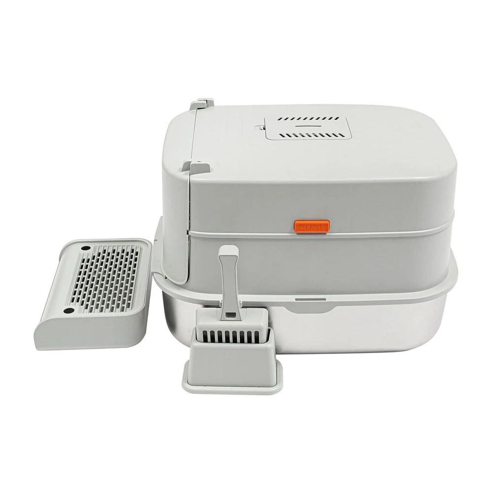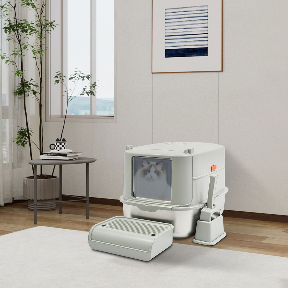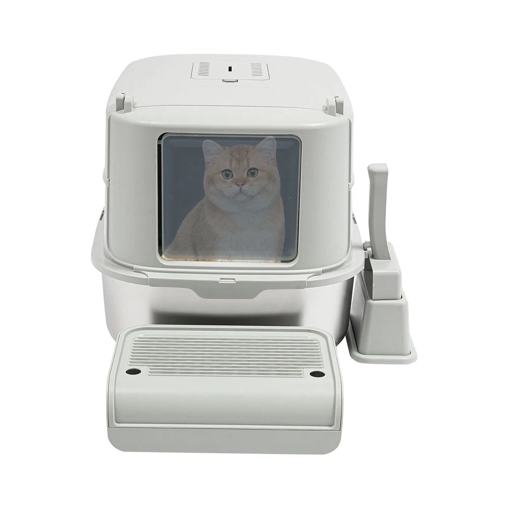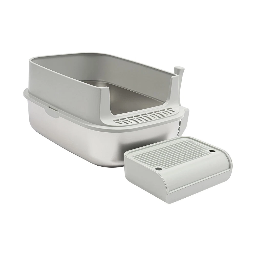 Cat Litter Box Large Litter Box for Big Cats Cat Litter Box with High Sides Description Description Are you looking for a cat litter box that can provide a comfortable and convenient experience for your cat? Then do not miss this! Its large capacity not only provides your cat with a spacious interior but also relieves your daily cleaning chores. Take it home now and enhance your cat's toilet experience! Key Features Last for Years: Made of excellent stainless steel , PP, and ABS, it is rustproof, wear-resistant, and impact-resistant, with a strong load-bearing capacity and high durability, not easy to deform, to ensure your long-term use. Large Capacity: The large 18.16-quart capacity litter pan allows you to add a large amount of litter at one time, which will last your cat roughly 30 days, effectively reducing the number of times you have to add litter and giving you peace of mind when you leave the house. Thoughtful Design: The built-in inverted plate and unique snap design with overlapping edges effectively prevent urine from leaking through the cracks, and also solve the problem of scattering cat poop when your cat digs. A sturdy 4.72-inch high-sided middle shell and a 5.12-inch top cover can 360° protection against litter splatter. An anti-splash pedal also prevents litter from being carried out by your cat and it features a raised design, making it ideal for short-legged and senior cats. User Friendly: It features an easy-to-assemble, 3-tier removable structure and is available in fully enclosed and semi-enclosed configurations. The fully enclosed setup prevents the spread of odors, effectively stops urine leaks, and provides privacy for your cat. The enclosed setup promotes ventilation, making it easier for you to clean. It features a deodorizing compartment for a bamboo charcoal bag (not included) to quickly absorb odors. Effortless Cleaning: The stainless steel litter pan's simple design makes it easy to rinse with water. In addition, the litter scoop allows you to scoop away cat poop quickly and easily. The inside of the footrest can hold a litter bag (not included), making it easy to remove loose litter and keep your floors clean and tidy. Assembly in a Breeze : The simple structure, complete accessories, and detailed English manual help you to assemble it quickly and firmly without easily falling off. Elegant Appearance: With a light gray cover and a silver basin, the overall look is low-key and stylish, adding elegance to home decoration. Multifunctional: The stainless steel pan has sturdy construction and seamless design, which is not easy to break and leak, so you can use it as a cat's bathtub, saving you money and time on additional purchases. Ideal Gift: Beautiful appearance and good practicality make it a great gift. You can give it to your family, friends, colleagues, etc. who have a cat. Customer Service: We aim to provide quality products and services. If you have any problems, please feel free to contact us. We will reply and solve the problem for you as soon as possible. Details Non-slip Pads: They can hold the litter box stable on the floor and prevent it from shifting and scratching the floor. Shovel Box: It allows you to store the cat litter scoop after each use while making it quicker and easier to access next time. Practical Cat Litter Scoop: It can be hung on the litter box for easy access and to avoid loss. It has a fine mesh structure so that even the smallest cat litter particles can be easily removed without falling through. Smooth Edges: The smooth and round edges make the product comfortable to use without scratching your cat's skin during her toilet or your hands when you move it. Application It is suitable for cats up to 22.05 pounds and you can place it in your living room, balcony, bathroom, pet store, and other places for use. Specification Color: Light Grey, Silver Style: Modern Assembly Required: Yes Mount Type: Freestanding Material: Stainless Steel, PP, ABS Capacity: 20L/ 18.16Qt Applicable Cat Weight: Below 10kg/ 22.05lbs Pan Size: 58*43.2*15cm/22.83*17*5.91in Medium Shell Height: 12cm/4.72in Top Cover Height: 13cm/5.12in Inlet Height: 20cm/7.87in Package Size: 60*44*19cm/23.62*17.32*7.48in Gross Weight: 4.8kg/10.58lbs Net weight: 4.56kg/10.05lbs Package Included 1* Stainless Steel Pan 1* Footboard 1* Top Cover 1* Medium Shell 1* Cat Litter Scoop 1* Non-slip Foot Pad Sticker 1* Shovel Box 1* English User Manual Notes Please check the style and size before purchasing. Please read the manual completely before installation and use, and pay particular attention to the safety instructions included. Please note that cat litter is not included in this product. After use, please replace the cat litter promptly. If there are multiple cats at home, the replacement cycle for cat litter can be proportionally shortened, with one cat taking about 30 days and two cats taking about 15 days. Regularly add cat litter to the pan, keeping the litter thickness at around 30-40mm. Please allow the slight color difference caused by the shooting light and 1-3cm error due to manual measurement and make sure you do not mind before ordering. Payment Delivery details Terms of sales About us Contact us Payment We accept ebay payment 。 Fees such as import duties, taxes are not included in the item price or shipping costs. These charges are the buyer's responsibility. Delivery details Shipping: 2-9 working days to: USA Terms of sales We maintain high standards of excellence and strive for hundred percent customer satisfaction. Feedback is very important to us. We hope that you contact us immediately before you give neutral or negative feedback, so that we can address your concerns. It is impossible to address issues if we do not know about them! About us Your satis faction is our ultimate goal. We work hard to earn your trust and future business. Our certified technicians have tested each item before shipping. The unit comes with 1 year limited warranty on all manufactur