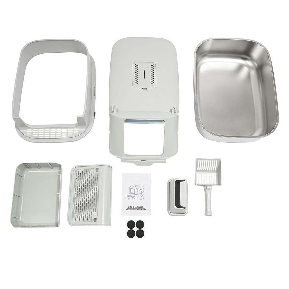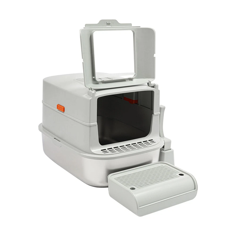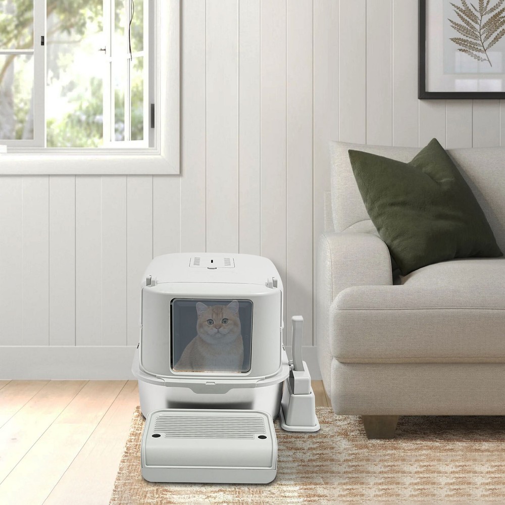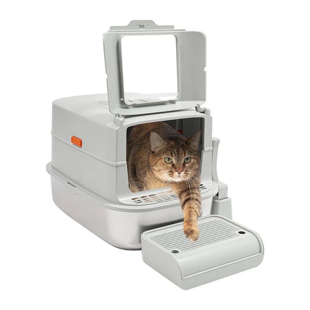 Cat Litter Box Large Litter Box for Big Cats Cat Litter Box with High Sides Description Description Are you looking for a cat litter box that can provide a comfortable and convenient experience for your cat? Then do not miss this! Its large capacity not only provides your cat with a spacious interior but also relieves your daily cleaning chores. Take it home now and enhance your cat's toilet experience! Key Features Last for Years: Made of excellent stainless steel , PP, and ABS, it is rustproof, wear-resistant, and impact-resistant, with a strong load-bearing capacity and high durability, not easy to deform, to ensure your long-term use. Large Capacity: The large 18.16-quart capacity litter pan allows you to add a large amount of litter at one time, which will last your cat roughly 30 days, effectively reducing the number of times you have to add litter and giving you peace of mind when you leave the house. Thoughtful Design: The built-in inverted plate and unique snap design with overlapping edges effectively prevent urine from leaking through the cracks, and also solve the problem of scattering cat poop when your cat digs. A sturdy 4.72-inch high-sided middle shell and a 5.12-inch top cover can 360° protection against litter splatter. An anti-splash pedal also prevents litter from being carried out by your cat and it features a raised design, making it ideal for short-legged and senior cats. User Friendly: It features an easy-to-assemble, 3-tier removable structure and is available in fully enclosed and semi-enclosed configurations. The fully enclosed setup prevents the spread of odors, effectively stops urine leaks, and provides privacy for your cat. The enclosed setup promotes ventilation, making it easier for you to clean. It features a deodorizing compartment for a bamboo charcoal bag (not included) to quickly absorb odors. Effortless Cleaning: The stainless steel litter pan's simple design makes it easy to rinse with water. In addition, the litter scoop allows you to scoop away cat poop quickly and easily. The inside of the footrest can hold a litter bag (not included), making it easy to remove loose litter and keep your floors clean and tidy. Assembly in a Breeze : The simple structure, complete accessories, and detailed English manual help you to assemble it quickly and firmly without easily falling off. Elegant Appearance: With a light gray cover and a silver basin, the overall look is low-key and stylish, adding elegance to home decoration. Multifunctional: The stainless steel pan has sturdy construction and seamless design, which is not easy to break and leak, so you can use it as a cat's bathtub, saving you money and time on additional purchases. Ideal Gift: Beautiful appearance and good practicality make it a great gift. You can give it to your family, friends, colleagues, etc. who have a cat. Customer Service: We aim to provide quality products and services. If you have any problems, please feel free to contact us. We will reply and solve the problem for you as soon as possible. Details Non-slip Pads: They can hold the litter box stable on the floor and prevent it from shifting and scratching the floor. Shovel Box: It allows you to store the cat litter scoop after each use while making it quicker and easier to access next time. Practical Cat Litter Scoop: It can be hung on the litter box for easy access and to avoid loss. It has a fine mesh structure so that even the smallest cat litter particles can be easily removed without falling through. Smooth Edges: The smooth and round edges make the product comfortable to use without scratching your cat's skin during her toilet or your hands when you move it. Application It is suitable for cats up to 22.05 pounds and you can place it in your living room, balcony, bathroom, pet store, and other places for use. Specification Color: Light Grey, Silver Style: Modern Assembly Required: Yes Mount Type: Freestanding Material: Stainless Steel, PP, ABS Capacity: 20L/ 18.16Qt Applicable Cat Weight: Below 10kg/ 22.05lbs Pan Size: 58*43.2*15cm/22.83*17*5.91in Medium Shell Height: 12cm/4.72in Top Cover Height: 13cm/5.12in Inlet Height: 20cm/7.87in Package Size: 60*44*19cm/23.62*17.32*7.48in Gross Weight: 4.8kg/10.58lbs Net weight: 4.56kg/10.05lbs Package Included 1* Stainless Steel Pan 1* Footboard 1* Top Cover 1* Medium Shell 1* Cat Litter Scoop 1* Non-slip Foot Pad Sticker 1* Shovel Box 1* English User Manual Notes Please check the style and size before purchasing. Please read the manual completely before installation and use, and pay particular attention to the safety instructions included. Please note that cat litter is not included in this product. After use, please replace the cat litter promptly. If there are multiple cats at home, the replacement cycle for cat litter can be proportionally shortened, with one cat taking about 30 days and two cats taking about 15 days. Regularly add cat litter to the pan, keeping the litter thickness at around 30-40mm. Please allow the slight color difference caused by the shooting light and 1-3cm error due to manual measurement and make sure you do not mind before ordering. Payment Delivery details Terms of sales About us Contact us Payment We accept ebay payment 。 Fees such as import duties, taxes are not included in the item price or shipping costs. These charges are the buyer's responsibility. Delivery details Shipping: 2-9 working days to: USA Terms of sales We maintain high standards of excellence and strive for hundred percent customer satisfaction. Feedback is very important to us. We hope that you contact us immediately before you give neutral or negative feedback, so that we can address your concerns. It is impossible to address issues if we do not know about them! About us Your satis faction is our ultimate goal. We work hard to earn your trust and future business. Our certified technicians have tested each item before shipping. The unit comes with 1 year limited warranty on all manufactur