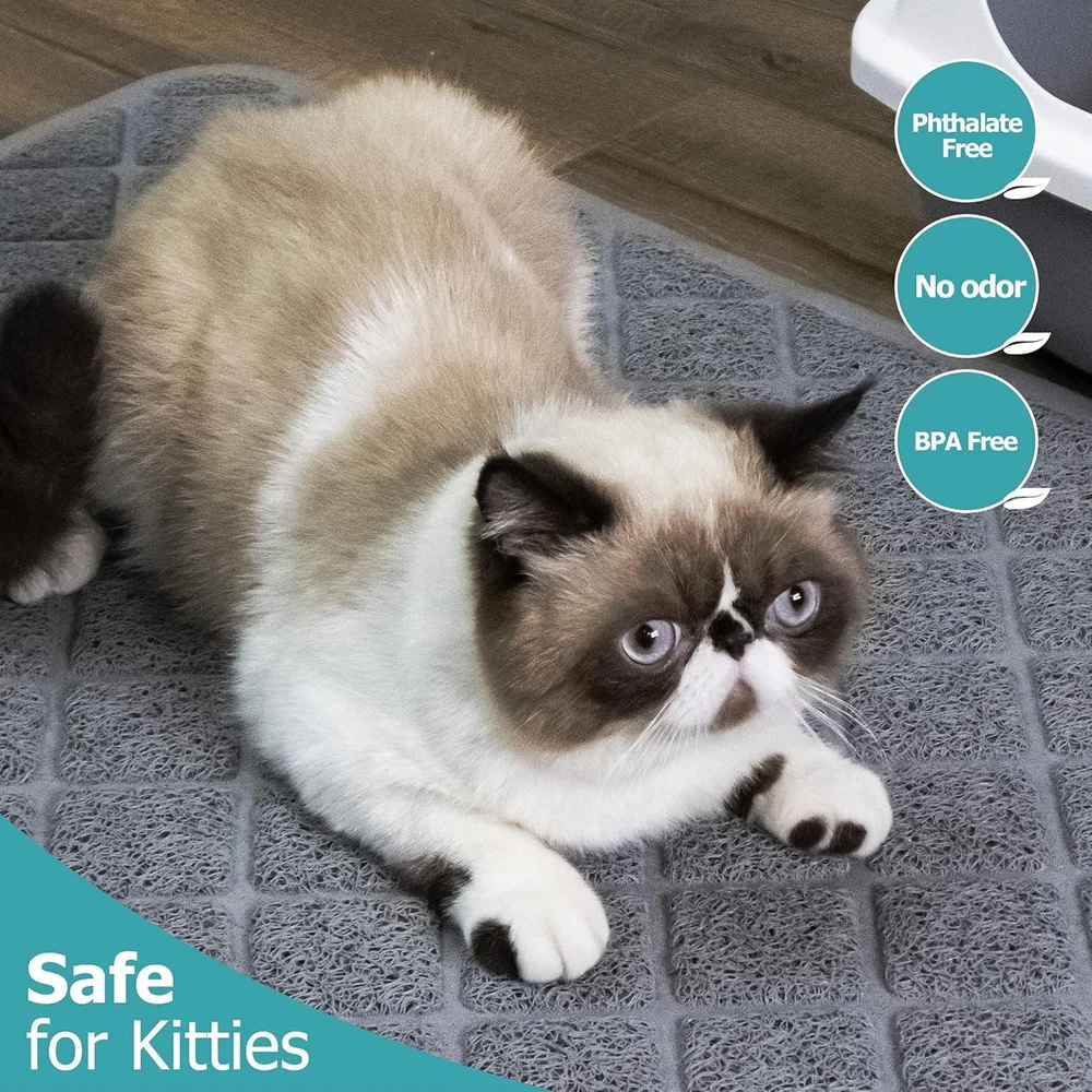 Keep Litter Away from Your Floor: Our cat litter trapping mat features thick, tight mesh and deep grooves designed in a grid pattern, making it highly efficient in trapping and holding the cat litter that splashes out of the cat litter box and gets stuck on your cat’s paws. Durability: Long-lasting and durable backing is highly slip-resistant, so the litter matt no track stays securely in place outside of the cat box and it will not damage the surface of your floor; durable enough to withstand your cat’s scratching. Perfect Size: 24 x 17 inches grey small cat litter trapper mat is designed so it can hold the litter on the mat and keep your floor clean. Easy to Clean: The cat litter mats are easy to clean by simply shaking off, vacuuming. And the materials are waterproof, you can rinse down with soapy water before leaving to fully dry (preferably not in direct sunlight). Premium Quality: Made from soft PVC material, our kitty litter mat creates a comfortable and cushioned feel for your cat’s sensitive paws, yet soft enough for your cat to nap on. Safe for your cat and environmentally friendly because our cat matts for litter is laboratory tested to be phthalate and BPA-free. Manufacturer Conlun Brand Conlun Color Grey Material Polyvinyl Chloride Target Audience Keyword House-cats Brand Name Conlun UPC 601549970542 Item Form Mat Recommended Uses For Product Animal Waste Item Package Dimensions L x W x H 9.21 x 8.19 x 1.5 inches Item Weight 12.7 ounces Material Feature Waterproof Package Dimensions 9.21 x 8.19 x 1.5 inches; 12.7 ounces Size 1 Count (Pack of 1) Number of Items 1 Unit Count 1.0 Count 6846151
