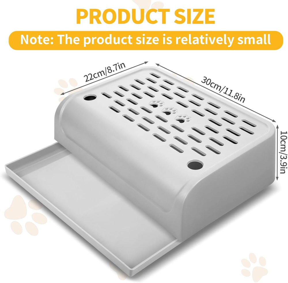 Cat Ramp for Litter Robot, Self Cleaning Cat Litter Box Step with Storage Cat Litter Slide for Cats Step Stool with Filter Function Litter Catcher Tray for Automatic Litter Box 11.8X8.7X3.9In(Gray) Small Size:The dimensions of The cat litter ramp for cat litter robot are 11.8 x 8.7 x 3.9 inches, note that it is smaller in size Litter Collection: The grid on the top of our cat mat for litter box collects the litter as it is carried out, keeping the room clean and tidy. Litter matt for cat holds more litter sand so it would need to be taken care of less frequently, perfect for lazy people. The cat litter box pedal collects cat litter, and the bottom can be pulled out. You need to clean the cat litter box regularly Quality Material: The cat litter ramp for cat litter robot is made of high quality stainless steel material, so you don't have to worry about your cat scratching and damaging it. The cat litter slide can be rinsed directly with water, and it keeps the area around the litter box clean and tidy Fits Most Litter Boxes: The cat litter catcher fits most sizes of litter boxes. This litter box cleaner is not only a must-have accessory for an automatic cat litter box, but can also be used as a mat for cats to rest or play on in a variety of scenarios Easy Access : The litter box mat have a gentle slope that makes it easy for most cats to get in and out of the litter box. With the inside of the kitty litter mat being hollow, there will no longer be nowhere to store items such as litter bags, cat food cans and cleaning brushes Guaranteed Satisfaction: If you don't want to see your cat bring out tons of litter from the robot litter box every time, then try our cat stairs. We are sure that this cat litter box foot pedal can solve your problem perfectly Product description 8.82 inches x 13.07 inches x 3.46 inches. Weight: 1.3 lb Style simplicity Item Dimensions LxWxH 12.2 x 8.3 x 3.5 inches Color Gray Product Dimensions 12.2"L x 8.3"W x 3.5"H Material Polyester Load Capacity 15 Pounds Item Weight 1.3 Pounds Target Audience Keyword Cats Size Medium Specific Uses for Product Indoor Item Package Dimensions L x W x H 13.07 x 8.82 x 3.46 inches Number of Items 1