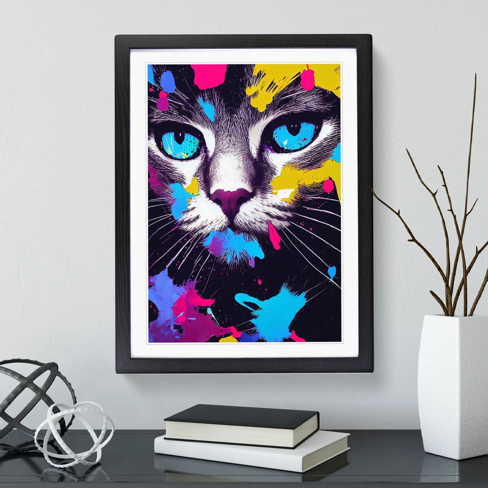 Transform your living space with our captivating framed wall art prints. Crafted in the UK, the stunning Cat Splashed In Paint No.3 framed print is designed to elevate your home decor. We utilise high-quality inks to ensure the colours of the artwork are rich, vibrant, and true to life. The print seamlessly fits within a contemporary frame, creating a stylish wall art picture that is ready to hang in your living room, lounge, bedroom, dining room and home office. Visit Our Shop eBay Message Framed Art Print Enhance your living space and showcase your individual style with our framed prints. Each design is printed upon premium art paper with fade-resistant inks, ensuring the colours remain rich and vibrant for years to come. The print is encased in a ready-to-hang frame, offered in black, oak, or walnut, and safeguarded by shatter-resistant Perspex. An ideal addition to your home, and the perfect gift choice. Like what you see? Visit our eBay store to see more. Premium Quality : The design is printed on quality art paper, enhanced with fade-resistant colours. Ready to Hang : The frame is pre-fitted with hanging hardware, making wall mounting simple, safe and secure. Frame Dimensions : A4 - 25 x 34 cm / A3 - 34 x 46 cm / A2 - 46 x 64 cm. Fast Shipping : Prompt, reliable UK-based dispatch. Customer Satisfaction : Our priority is your satisfaction which is why we offer a hassle-free return policy. Payment You can pay for your order safely and securely via credit or debit card, Apple Pay, Google Pay, and PayPal. Shipping Production times are 1 to 2 working days. Orders are sent via Royal Mail or Evri (depending on size). Returns For your peace of mind, we have a 30-day returns policy in place. Please, contact us for more details. At Big Box Art, we are dedicated to providing high-quality wall art and decorative homeware items. From the outset, we've focused on excellence in our products, service, and reputation, continually enhancing our standards. With an extensive selection of designs, you're certain to discover the perfect piece to suit your taste. ? Copyright 2021, Big Box Art. All rights reserved. Made with by eBayshopdesign.org