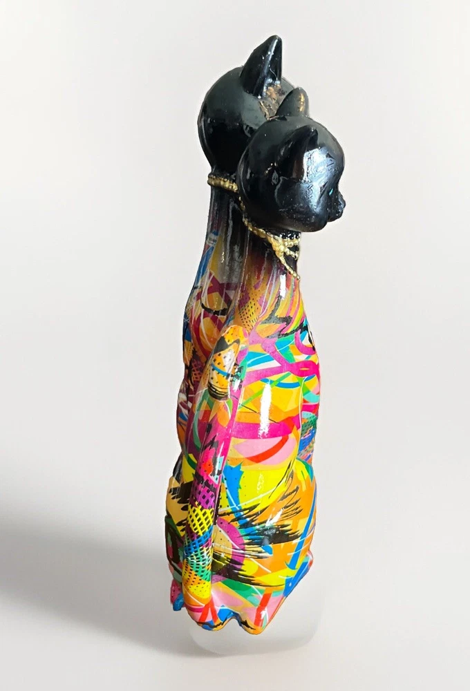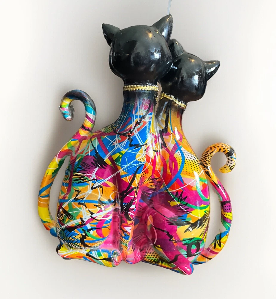 This unique pair of cat statues is a must-have for any feline lover's collection. Crafted from high-quality resin, these abstract graffiti figures depict a couple of cats in a modern and artistic style. Made in India, these figurines are perfect for those who appreciate fine art and want to add a touch of creativity to their home decor. The intricate details of these cat statues make them a true work of art. With their sleek and stylish design, they are sure to be a conversation starter and a great addition to any collection. Whether you're a cat enthusiast or simply looking for a unique piece of decor, these figurines are sure to impress.