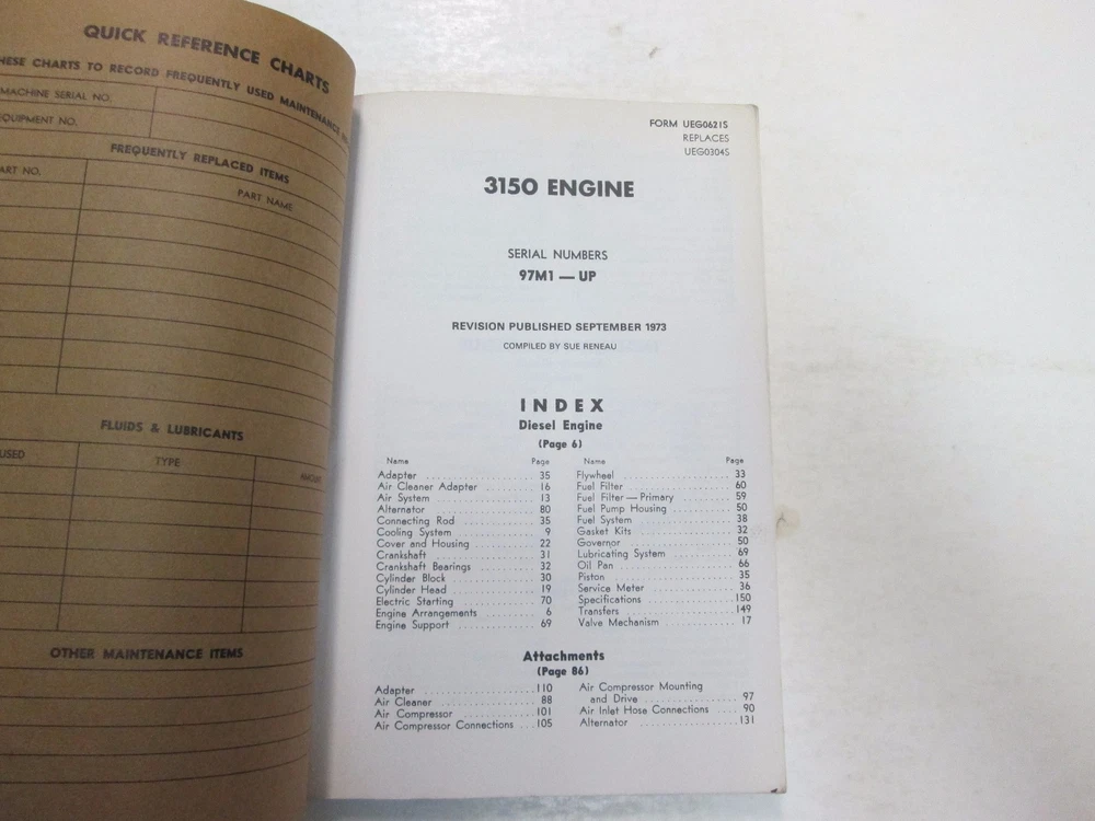 CATERPILLAR 3150 ENGINE PARTS BOOK MANUAL 97M1-UP MINOR WEAR Note: Parts book manual has minor wear along the edges with wear to the spine. Over all the contents within are in good legible condition. See Photos. SELLING AS IS! Informative with illustrations, step by step Instructions , exploded illustrations and/or diagrams, great manual to have when you own Caterpillar. This manual will save you money in Repairs / Service . This manual is published by CAT, and are the same manuals the CAT Mechanics/Techs use. If you have further questions feel free to message us FEEDBACK We will leave POSITIVE Feedback after we receive your payment. Please do not forget to give us POSITIVE Feedback and FIVE STARS on all of the Detailed Seller Ratings! If you are not satisfied with your shopping Experience, please contact us to get a solution before you decide to leave a NEUTRAL or a NEGATIVE Feedback, We will do our best to solve any problems for you as soon as possible. We will provide you with the BEST POSSIBLE service because the POSITIVE Feedback and FIVE STARS are what we are striving for. Please email me through "My Messages" or "Ask Seller Questions" if you have any question about our listings or your purchase. Please give us a Five Star Rating! Thank you very much! Track Page Views With Auctiva's FREE Counter