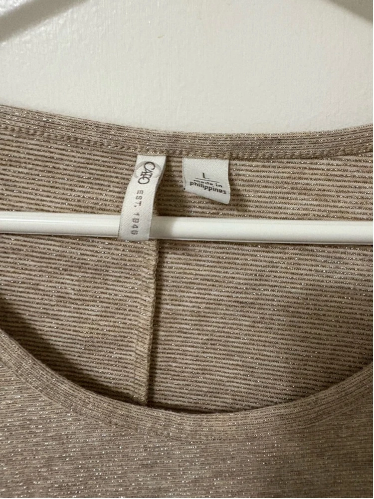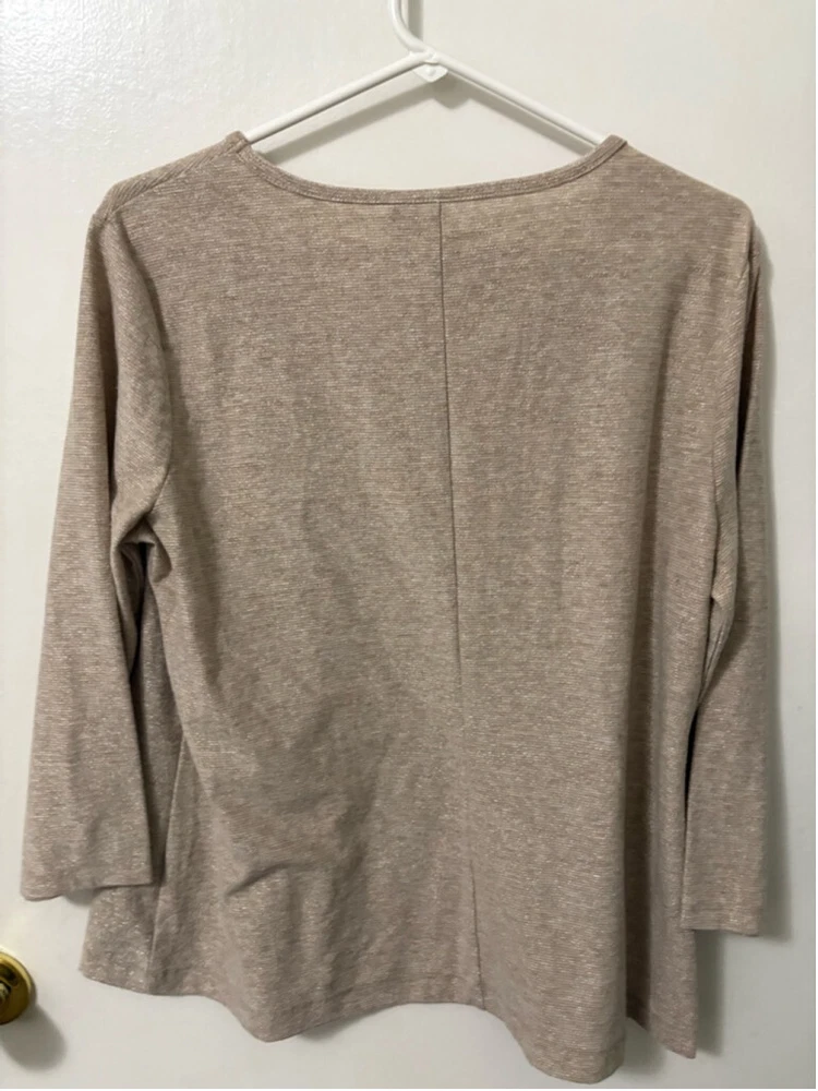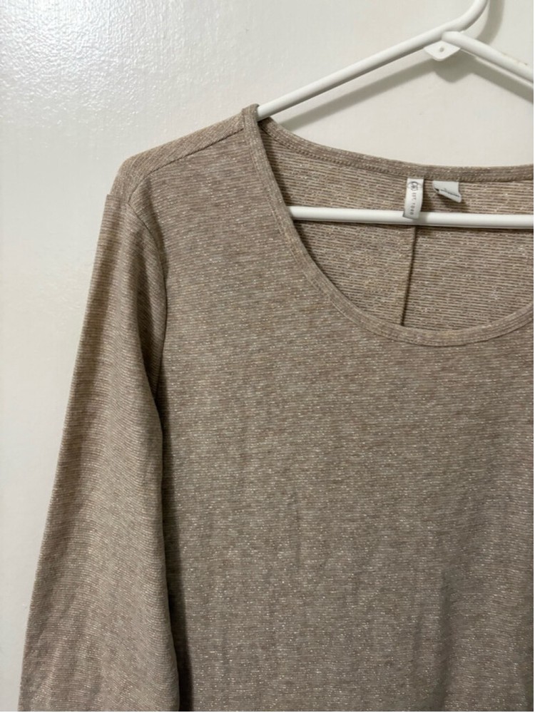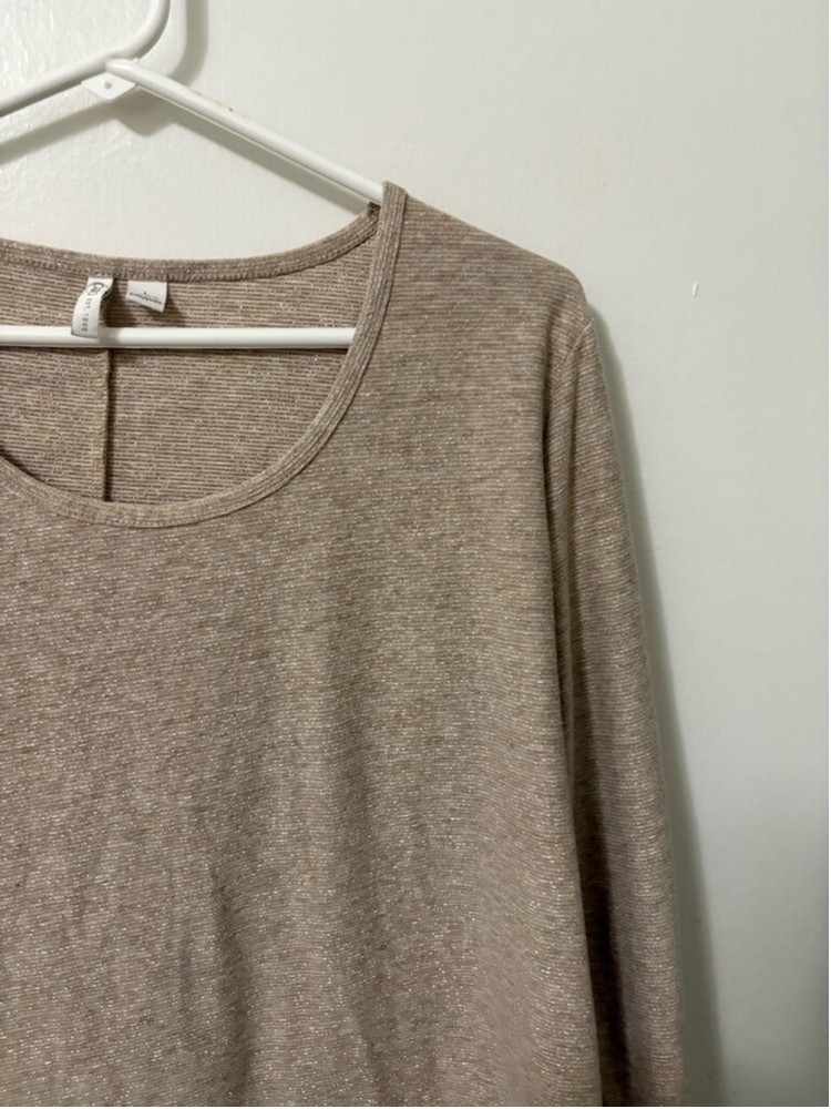 Cato womens gold shimmer blouse long sleeve top size Large scoop neck -pit to pit 21 inches - shoulder to hem 24 inches