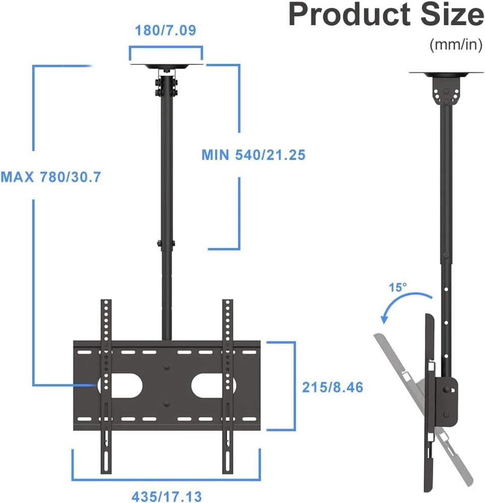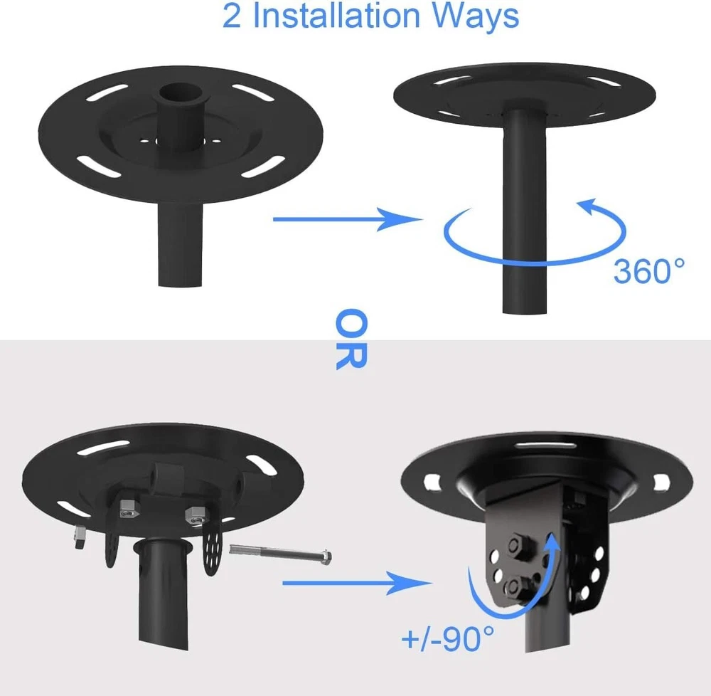 Ceiling TV Mount Bracket LCD LED Plasma 26-65 inch Tilt Swivel Height Adjustable NOT DELIVERED TO MIAMI-DORAL-Warehouse- OUT OF STOCK ADDRESS. All order use Stock address and PO box address will be cancel. Please don't make order Specifications : Ceiling Display Mount - ideal for most 26-65" LCD LED plasma flat panel display weigh up to 100lbs (45kg) Adjustment - 15° tilting of TV plate, +/-90° tilt of wall plate (or 360° swivel) to achieve the ideal screen viewing position Compatibility - compatible with VESA 100x100mm-400x400mm, fits both flat ceiling and sloped ceiling Feature - height adjustable from 21.25" to 30.7", integrated cable management Package - 1×ceiling mount, 1×standard installation kit, 1×user manual Product Description: Height Adjustment 4 levels height adjustment of pole. Angle Adjustment Tilt 15° of TV. +/-90° Tilt Tilt +/-90° of wall plate if installed as the way above. 360° Rotation Rotate 360° of installed as the way above. Step 1 Two ways of connecting wall plate and outer pole: +/- 90° tilt or 360° rotation. Step 2 Connect outer pole and inner pole if needed. Then connect pole and TV plate. Step 3 Install Hooks on the TV. Step 4 Hang the TV on the TV plate (2 people needed). Shipping & Handling: Processing Time: 3 – 5 business days. Standard US Shipping Time: 2 - 9 business days. Shipping Time WW: Average 7 - 10 business days, maximum 15 business days for some location. Term of Sale: We reserve the right to deny payment from unverified PayPal accounts or any suspicious or fraudulent activity. We reserve the right to end the auction earlier when there is problem with the item. We will make refund / reshipment if there's defect on our product or if we sent the wrong size/product code. Buyer should send picture(s) of the item(s) that have problem for our reference. Shipping charges are not refundable. Feedback: Positive feedback will be given once payment received. If you are satisfied with our product please kindly leave us a positive feedback and good ratings. If you have any issue / problem with our product, please contact us and give us a chance to solve your problem before leaving any neutral or negative feedback. Contact Us: Should you have any question please do not hesitate to send message on eBay. We will reply you within 24-48 hours and make sure you will have a good experience having business with us.