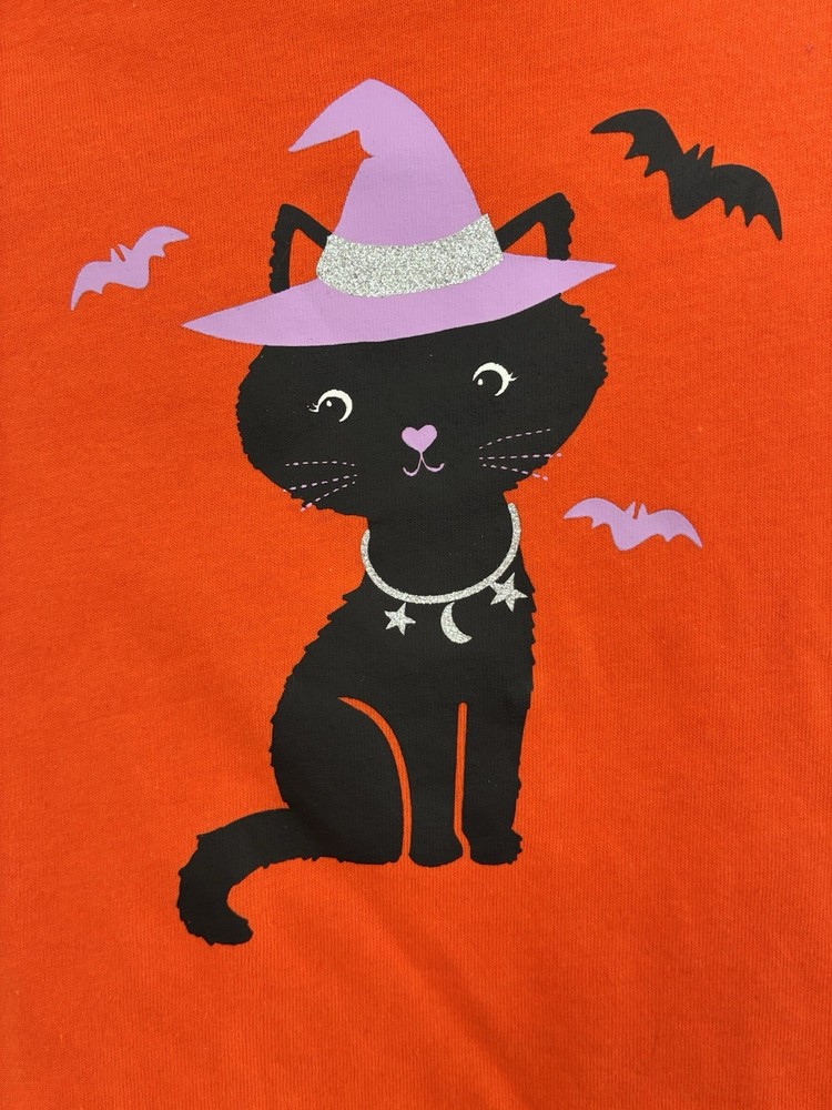 Celebrate! Halloween Toddler Girls Cute Black Cat Short Sleeve Shirt Orange 2T. Condition is new with tags. Smoke free, pet free home. Shipped via USPS Ground Advantage.
