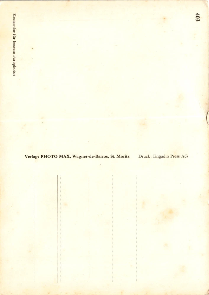 MAKE AN OFFER. THE MORE YOU BUY THE BETTER DEAL I WILL ACCEPT The postcard features a picturesque view of Celerina, a village located in the Oberengadin region of Switzerland at an elevation of 1750 meters. The postcard is printed using Kodacolor technology for enhanced color photos. It is published by PHOTO MAX, a publishing company owned by Wagner-de-Barros based in St.