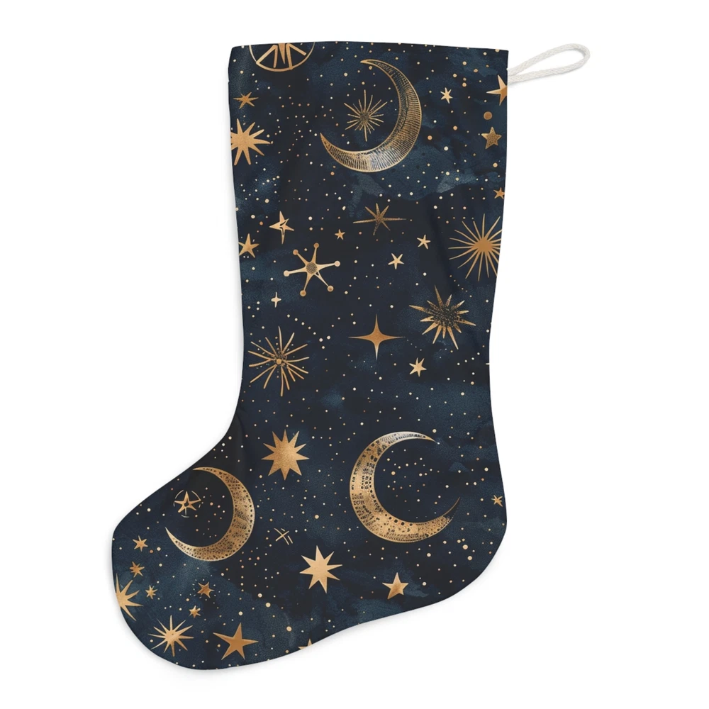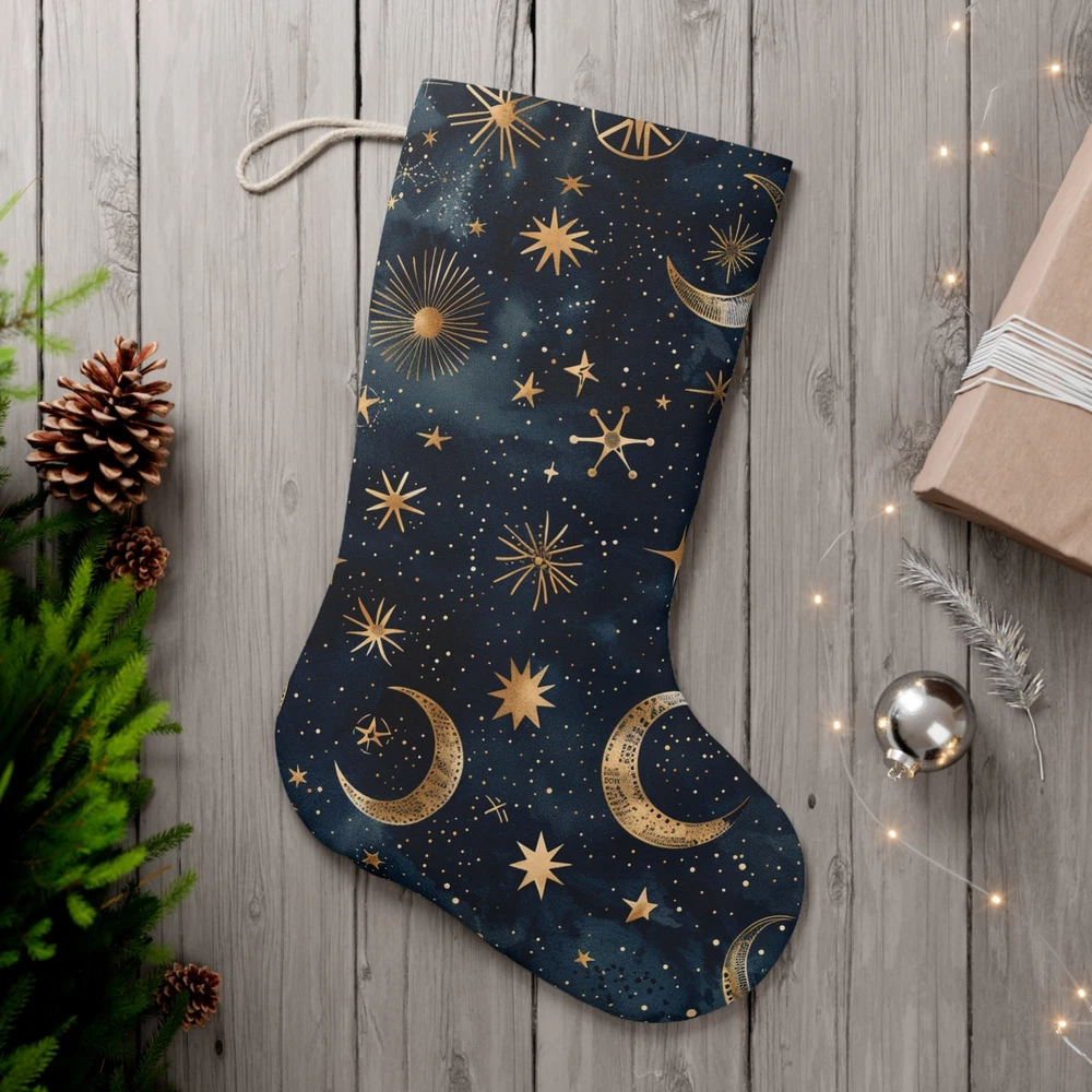 Celestial Christmas Stocking stars and moons design gifts for Christmas