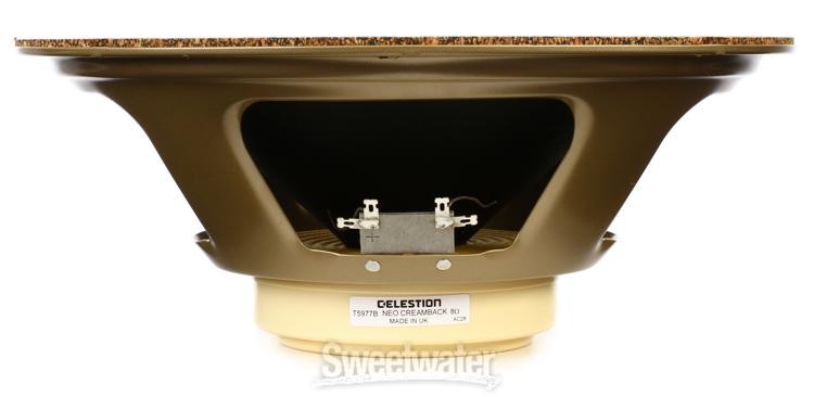 NOTE: Speakers are non-returnable. Celestion speakers are a staple of modern music. Starting in the 1960s, they helped define generations of guitar tone. The Celestion G12 Neo Creamback 12" guitar speaker delivers all of the characteristic tone that is making their Creambacks the go-to speaker for so many players, but in a design that's only half the weight. Celestion engineers have created a way to use neodymium magnets to conjure the same performance qualities that guitarists love about older designs. You still get the punch, warmth, and midrange you love, but the Neo Creamback does it without breaking your back. Celestion G12 Neo Creamback 12" Guitar Speaker Features: A 12" guitar speaker with a neodymium magnet Same tone as the famed Celestion G12M Creamback Only 4.2 lbs. 60W power handling 75Hz-5kHz 8 Ohms The light-weight G12 Neo Creambacks are going to fly off of Sweetwater shelves. Sorry, we cannot take Sweetwater is an Authorized Celestion Dealer Genuine New Item Sweetwater's 2-year warranty Celestion G12 Neo Creamback 12-inch 60-watt Replacement Guitar Amp Speaker - 8 12" Guitar Speaker with Neodymium Magnet, 4.2 lbs., 60W, 8 Ohms, and 75Hz-5kHz Frequency Response NOTE: Speakers are non-returnable. Celestion speakers are a staple of modern music. Starting in the 1960s, they helped define generations of guitar tone. The Celestion G12 Neo Creamback 12" guitar speaker delivers all of the characteristic tone that is making their Creambacks the go-to speaker for so many players, but in a design that's only half the weight. Celestion engineers have created a way to use neodymium magnets to conjure the same performance qualities that guitarists love about older designs. You still get the punch, warmth, and midrange you love, but the Neo Creamback does it without breaking your back. Celestion G12 Neo Creamback 12" Guitar Speaker Features: A 12" guitar speaker with a neodymium magnet Same tone as the famed Celestion G12M Creamback Only 4.2 lbs. 60W power handling 75Hz-5kHz 8 Ohms The light-weight G12 Neo Creambacks are going to fly off of Sweetwater shelves. Sorry, we cannot take returns on speakers. Specification Detail Application Guitar Size 12" Impedance 8 ohms Power Handling 60W Frequency Range 75-5000Hz Voice Coil Diameter 1.75" Magnet Type Neodymium Magnet Diameter 4.9" Weight 4.2 lbs. RETURN INFORMATION We want you to be completely happy with your purchase from Sweetwater. If you are not satisfied with your product, you may return it for a refund of the purchase price within 30 days. If your purchase was eligible for Free Shipping, the shipping cost will be deducted from your credit or refund. Returns must be in the complete and original packaging with all accessories and complete documentation (Owner's Manual, warranty card, quick start guides, etc.), show no signs of wear or use, and include a Return Authorization number or be subject to a restocking fee.