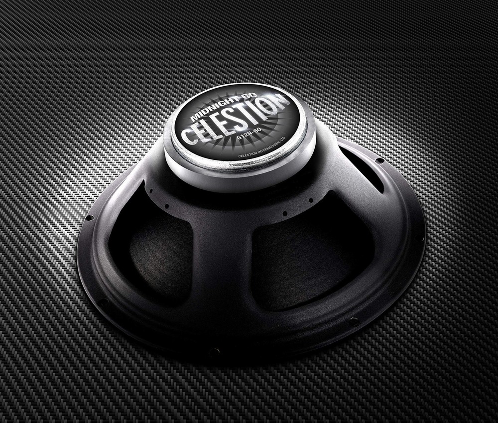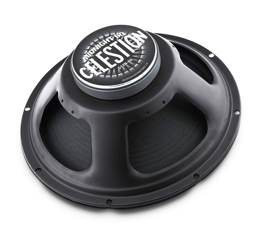 Celestion Midnight 60 Guitar Speaker Specifications : Nominal diameter : 305mm / 12in || Nominal power rating : 60W || Rated impedance : 8Ω or 16Ω || Sensitivity : 96dB || Frequency range : 75-5000Hz || Resonance frequency, Fs : 75Hz || DC resistance, Re : 6.82Ω & 13.12Ω || Voice coil diameter : 1.75in / 44mm || Chassis type : Pressed steel || Magnet type : Ceramic || Magnet weight : 0.6kg / 20oz Mounting Information : Unit weight : 2.5kg / 5.5lb || Magnet structure diameter : 115mm / 4.5in || Mounting hole dimensions (mm) : 7.9mm || Mounting hole dimensions (in) : 0.31in || Mounting hole PCD (mm) : 297mm || Mounting hole PCD (in) : 11.7in || Number of mounting holes : 8 || Overall depth : 120mm / 4.7in || Cut-out diameter (mm) : 283mm || Cut-out diameter (in) : 11.1in The Midnight 60 continues Celestion’s tradition of delivering rich, classic British tone in innovative new ways, featuring the moving parts that were inspired by the V-Type design, but with a different magnet assembly which has the effect of shifting the tonal balance to give a sonic character more reminiscent of Celestion’s vintage G12L speaker. Whatever the genre, Midnight 60 provides an exhilarating sound in the classic Celestion style. Cleans are well balanced with just enough top end to make the high frequencies sparkle. Overdriven this speaker brings searing rock tones with plenty of low-end warmth and mid-band character.