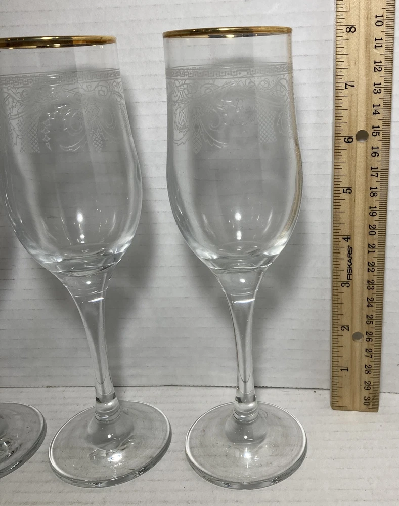 This beautiful set of Cellini Stemware Fluted 24k Gold Finish Wine Glasses is perfect for any formal occasion. With a clear crystal material that boasts a 24k gold finish rim, these glasses are sure to impress your guests. The set includes four glasses, making it an ideal addition to your drinkware collection. Each glass is carefully crafted to ensure the highest quality, and the decorative style adds an elegant touch to any table setting. Whether you're hosting a dinner party or enjoying a glass of wine after work, these Cellini Stemware glasses are a must-have. These do not include the original box but the will be packaged well and shipped out the same or next business day.