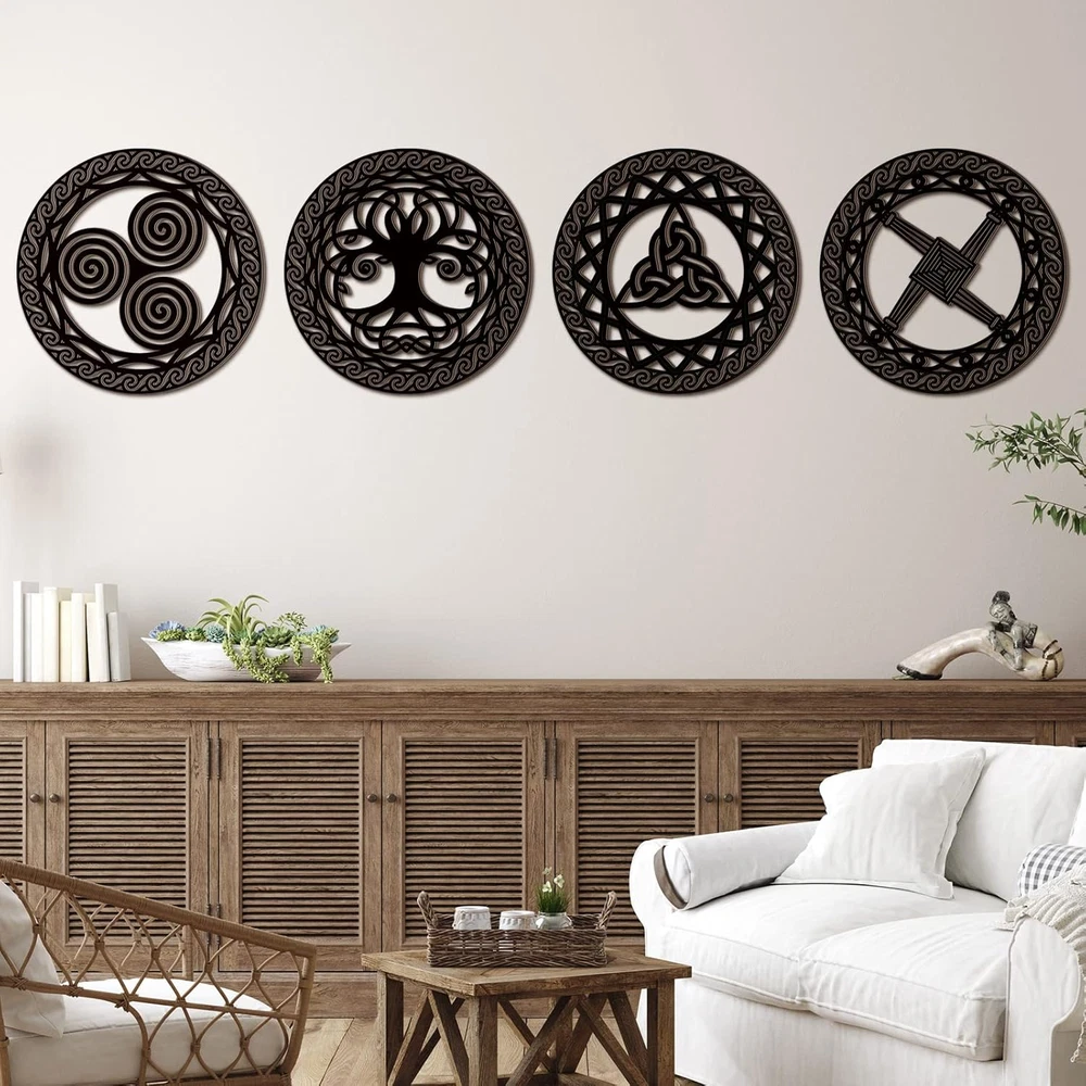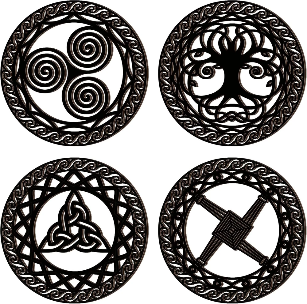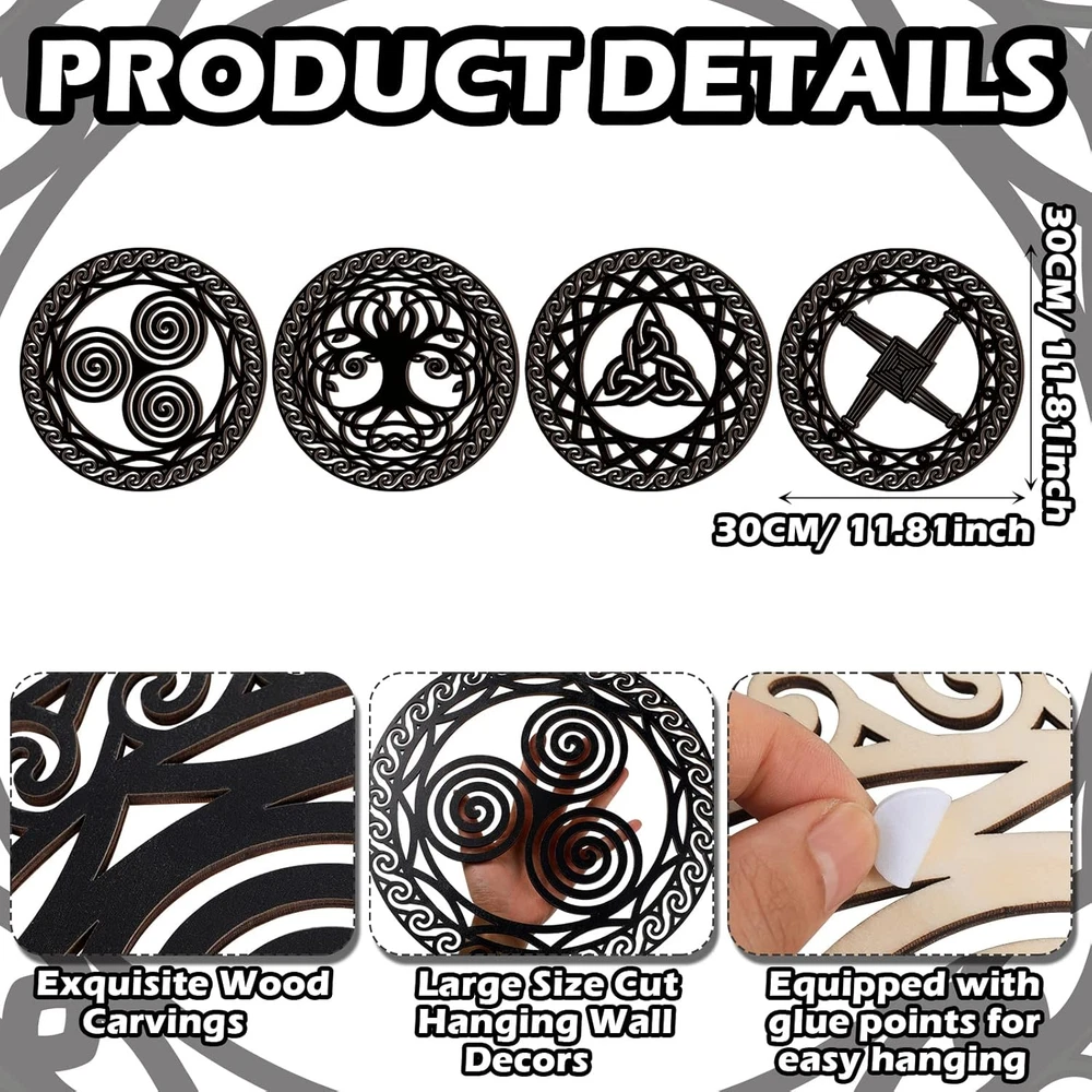 Proper Size: each sacred geometry wall art measures approx. 11.8 x 11.8 x 0.2 inches, proper in size and light in weight, will not take up too much space; The elegant wall decors can add warm atmosphere to your home Novel and Exquisite Design: these wood wall arts adopt Celtic symbols design, which is widely regarded as one of the oldest surviving Irish symbols, look novel and exquisite, these laser cut geometric patterns can better attract people's attention Reliable and Long Lasting: the wooden wall art decor is made of wood material with smooth surface and fine workmanship, tear and wear resistant, the classic color can also match well with any interior style Suitable for Many Occasions: you can use the Celtic wall arts to decorate your kitchen, living room, bedroom, bathroom, office, coffee shop and more, you can also hang them on the wall, door, window or fireplace; These wall art decors can add elegance to your room Meet Your Decorative Needs: this package comes with 4 pieces Celtic wall decors in 4 styles, the quantities and styles are sufficient that can better meet your home decorative needs; You can also share them with your close friends Features: Housewarming gifts: You can apply the wooden Celtic decors as housewarming gifts to send to your friends, neighbors, relatives or colleagues, people will feel happy after receiving them. Match well with other decors: Our Celtic decor wall art applies classic and delicate, can also match well with other decors in your home and leave a deeper impression on guests. Specifications: Material: wood Color: as shown Size: approx. 11.8 x 11.8 x 0.2 inch Package includes: 4 x Celtic wooden wall decors Notes: Manual measurement, please allow slight errors on size. The color may exist a slight difference due to different screen displays.