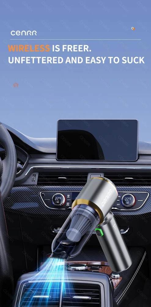 FREE SHIPPING 30 DAYS RETURN EASY PAYMENT Cenrr Mini Car Vacuum Cleaner - 360000pa Cordless, Handheld, Powerful Cleaner Introduction [Product Name]: Multifunctional Vehicle Vacuum Cleaner [Product functions]:mainly cleaning cars, vacuuming, blowing dust and so on [Package list]: vacuum cleaner X1 Accessories X 9 USB-C Charging line X 1 User manual X 1 [weight]:700g for MAX,720g for MAX 2hepa,830g for MAX 4hepa Version Introduction [Product material]: ABS [Motor]: New upgraded Brushless motor [Color]: Elegant Silver/Deep black [Vacuum degree]: 360000PA [Capacity of lithium battery]: 3 * 2000mAh [Rated speed]: 35500rpm [Charging mode]: Type-C charging line [Noise]: ≤ 32dB [Operating temperature]: - 20 ℃~+50 ℃ Thank you for shopping