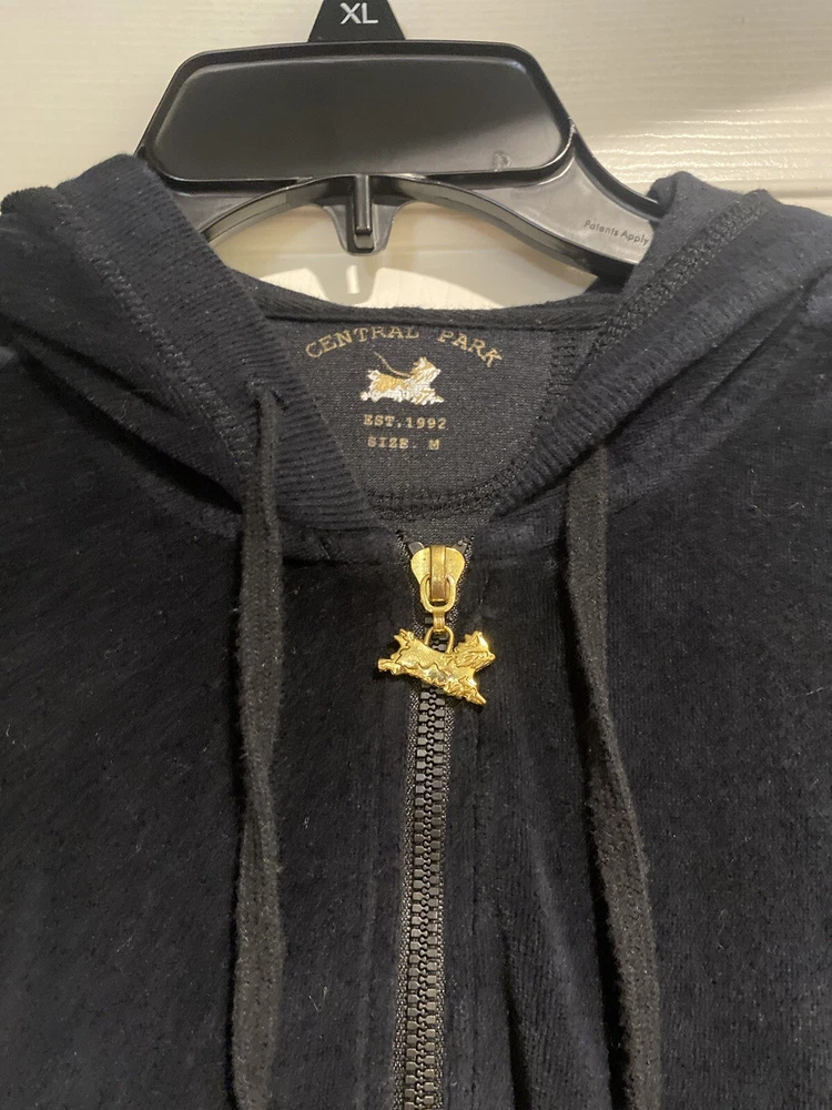 HomeCentral Park Velour Hoodie Y2K Women’s Size Medium Black Full Zipper B73