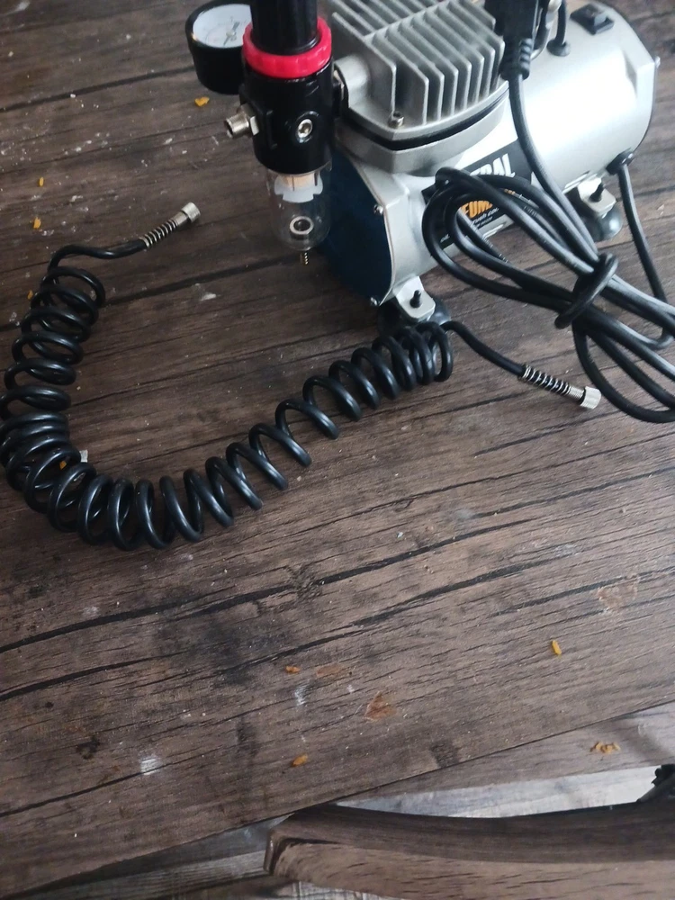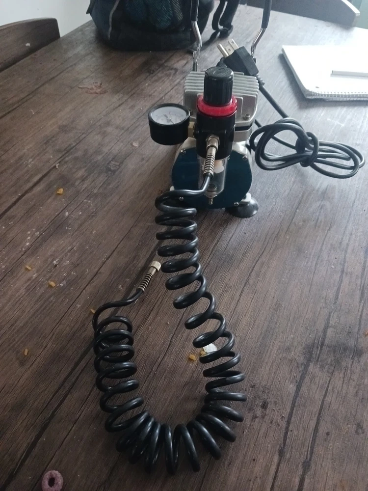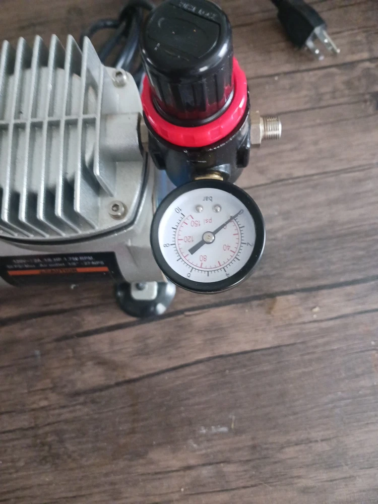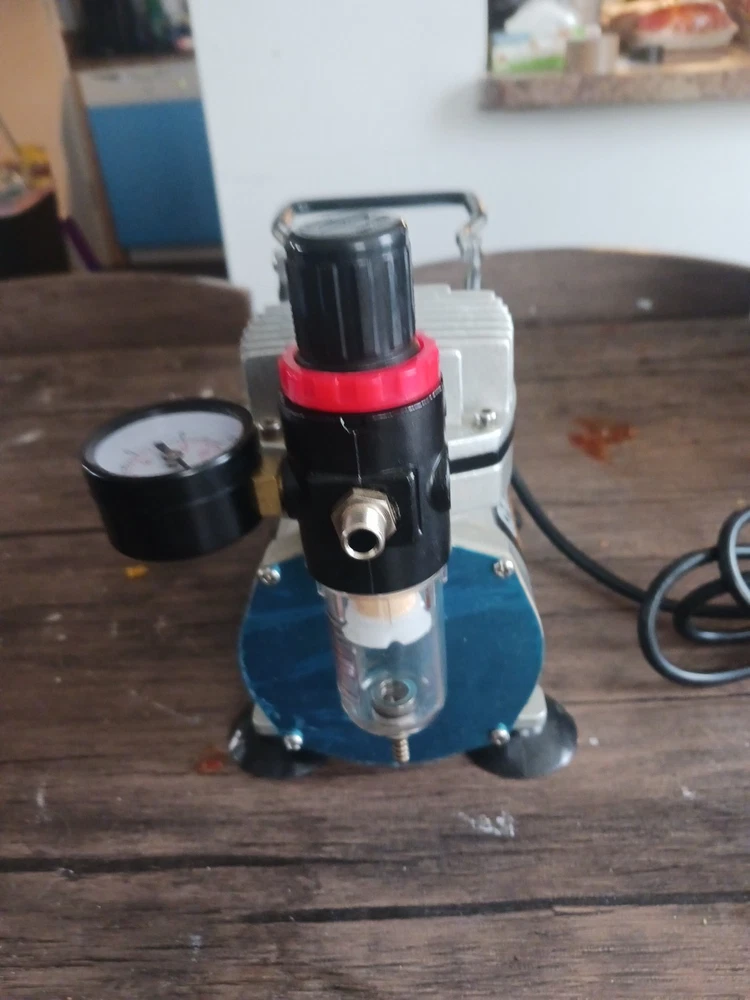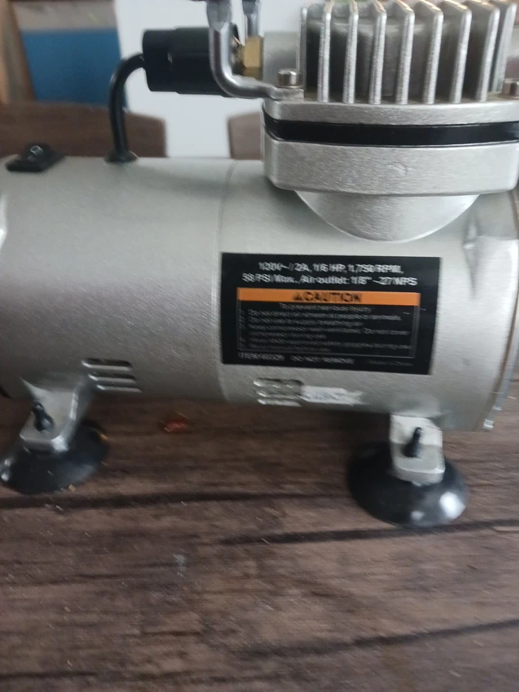 This is a Central Pneumatic 1/6 HP 58 PSI Oilless Airbrush Compressor, model 60329. It is a versatile and reliable tool suitable for various art and crafting projects. The compressor is designed to provide consistent and powerful airflow for airbrushing applications. The product is ideal for artists and crafters who require a reliable and efficient airbrushing system. With its compact design and easy-to-use features, this compressor is perfect for use in the studio or on the go. The brand, Central Pneumatic, is known for producing high-quality and durable tools that cater to the needs of artists and crafters. The airbrush Compressor is a really good machine and I want somebody to have it I love that machine I only used it three times now I want somebody to have it that will take care of it it's in great shape and it works really good I love all my customers