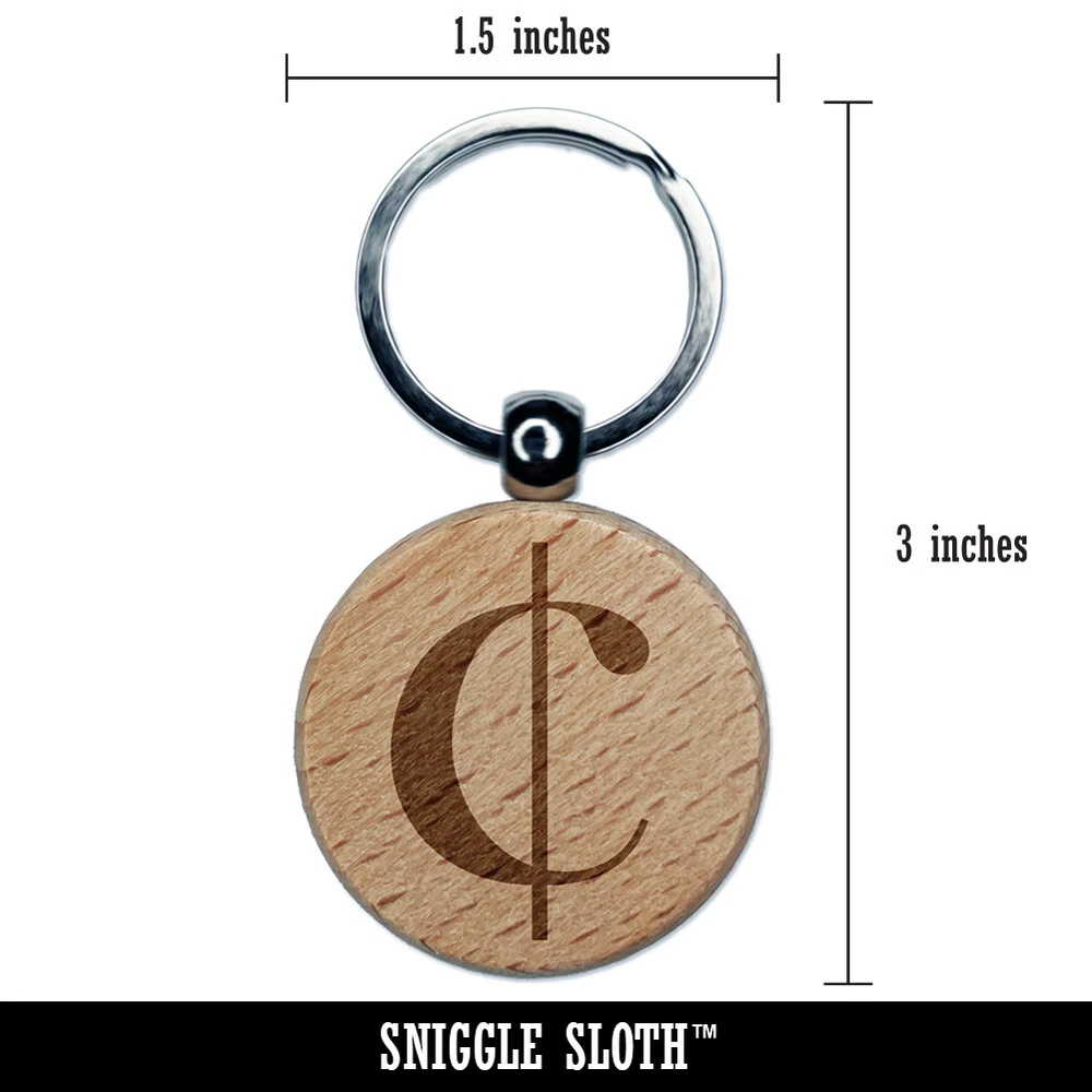 Cents Symbol Engraved Wood Round Keychain Tag Charm