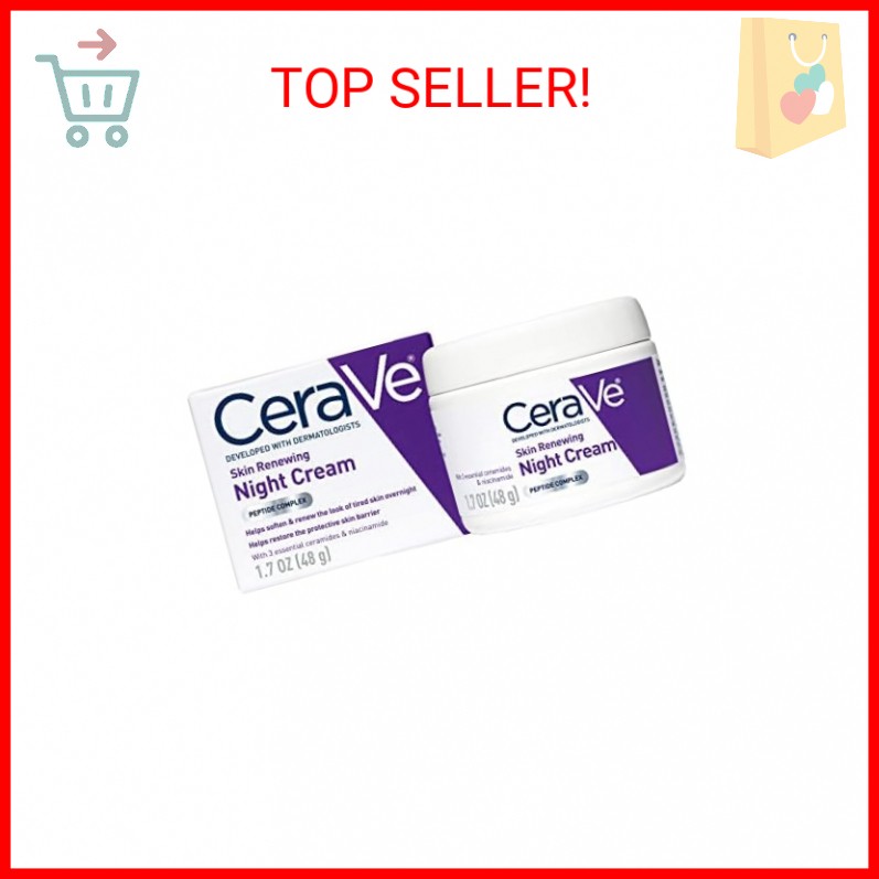 Welcome CeraVe Skin Renewing Night Cream, Niacinamide, Peptide Complex, and Hyaluronic Acid Moisturizer for Face, 1.7 Ounce, Packaging may Vary - [ PEPTIDE COMPLEX ] Help reduced the look of fine lines and wrinkles while supporting skin elasticity - [ OVERNIGHT MOISTURIZER ] Helps soften, hydrate and retain skin's moisture with hyaluronic acid. Renew the look of tired skin overnight. This skin care product does not come with a protection inner seal. - [ GENTLE ON SKIN ] Fragrance free, non-comedogenic, and non-irritating formula - [ 3 ESSENTIAL CERAMIDES ] Ceramides are found naturally in the skin and make up 50% of the lipids in the skin barrier. All CeraVe products are formulated with three essential ceramides (1, 3, 6-II) to help restore and maintain the skin’s natural barrier - [ DEVELOPED WITH DERMATOLOGISTS ] CeraVe Skincare is developed with dermatologists and has products suitable for dry skin, sensitive skin, oily skin, acne-prone, and more. The Fine Print Payments We accept the following payment methods PayPal Please pay as soon as possible after winning an auction, this will allow for quicker shipping times! Returns We accept returns. You can return unopened items in the original packaging within 30 days of your purchase with receipt or proof of purchase. If 30 days or more have passed since your purchase, we cannot offer you a refund or an exchange. Upon receipt of the returned item, we will fully examine it and notify you via email, within a reasonable period of time, whether you are entitled to a return. If you are entitled to a return, we will refund your purchase price and a credit will automatically be applied to your original method of payment. Only regular priced items may be refunded. Sale items are non-refundable. Shipping Shipment processing time All orders are processed within 2-3 business days. Orders are not shipped or delivered on weekends or holidays. If we are experiencing a high volume of orders, shipments may be delayed by a few days. Please allow additional days in transit for delivery. If there will be a significant delay in shipment of your order, we will contact you via email or telephone. Shipping rates & delivery estimates Shipping charges for your order will be calculated and displayed at checkout.
