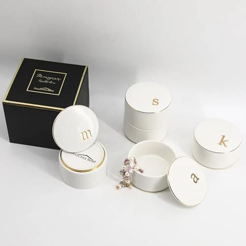 Return Policy Fast Delivery Trusted seller - Ceramic Jewelry Box, Elegant Embossed Jewelry Holder, Trinket Organizer with Gold Monogram Lid, Storage for Ring Necklace Bracelet Earrings, Rings and Accessories (m) Product Description 【Elegant Cylinder Design】 The white ceramic jewelry box boasts a sophisticated cylindrical shape, offering a sleek and modern storage solution for your precious items. 【Gold Embossed Monogram Lid】Each box features a beautifully embossed gold letter on the lid, adding a touch of personalized elegance and making it a unique keepsake or gift. 【Thoughtful Gift Option】With its exquisite design and personalized touch, this ceramic jewelry box serves as a perfect gift for birthdays, weddings, anniversaries, or any special occasion, offering a blend of functionality and style. 【Premium Ceramic Construction】Crafted from high-quality white ceramic, this jewelry box is not only visually appealing but also durable and long-lasting, perfect for safeguarding your valuables. 【Versatile Storage Solution】Ideal for storing rings, earrings, necklaces, or other small treasures, this box keeps your jewelry organized and easily accessible while adding a decorative touch to your space. 【Buy It at Ease】If you have any questions, don’t worry, feel free to contact us, we will respond within 24 hours! Shipping Returns Payment Shipping Shipping is FREE to all addresses other than APO/PO boxes in the lower 48 states. All our stock ships from US-based warehouses. Shipped via USPS or UPS (depending on location and package weight) Unless stated otherwise, all orders will ship within 24-72 hours of your payment being processed. Check our feedback to see the great reviews of FAST shipping we offer. Returns Seller does not accept returns Payment We currently accept payment via eBay managed payments only. Once payment is cleared, we will dispatch your shipment within 1-3 business days. Please refer to the "Shipping" tab for more information regarding shipping speed to your destination.