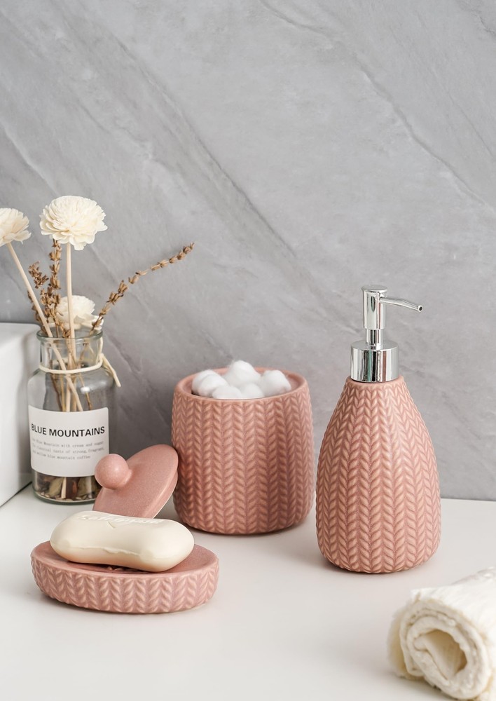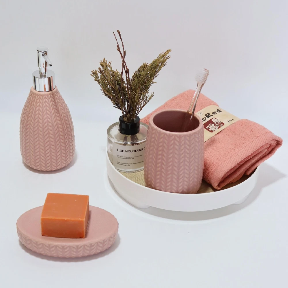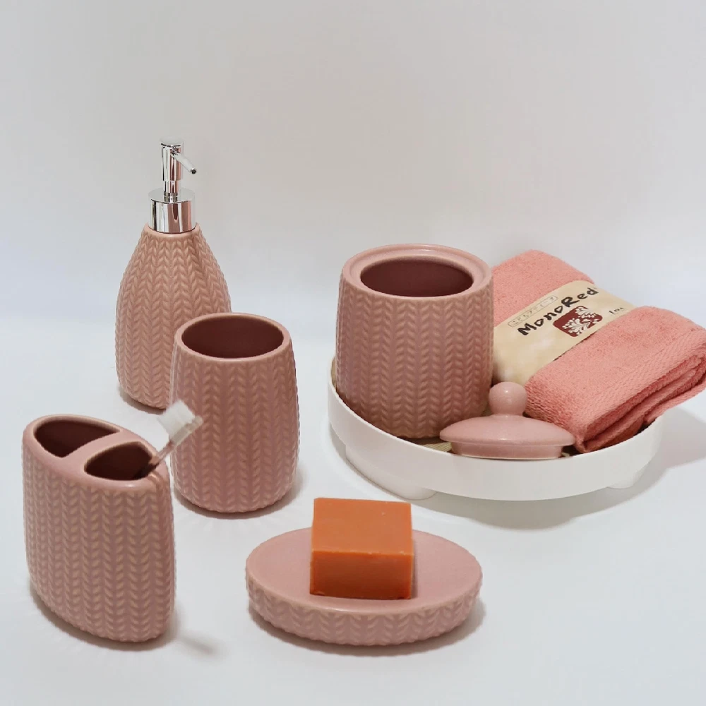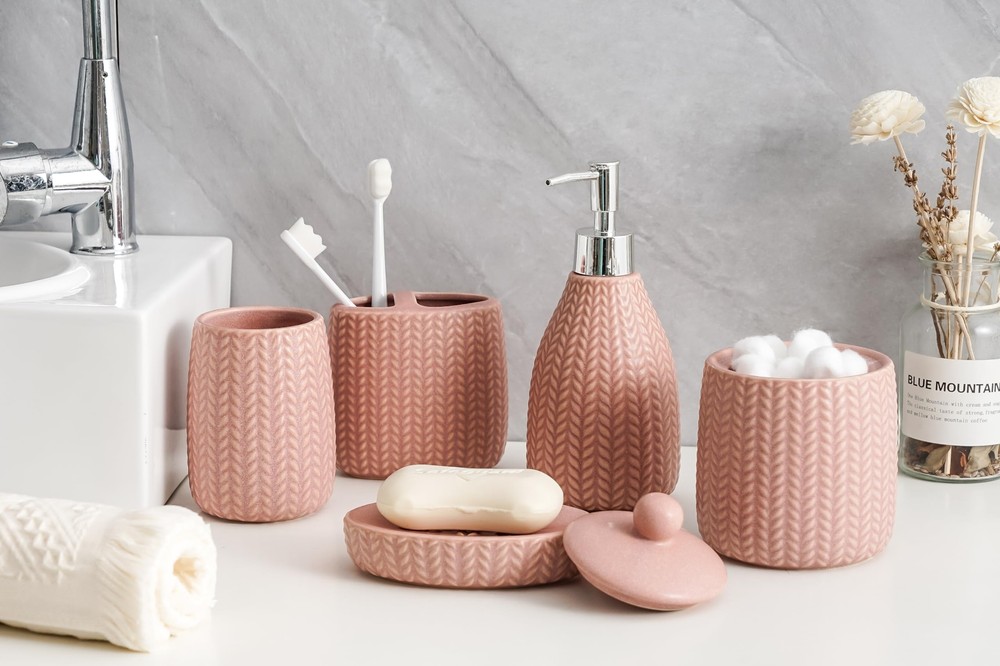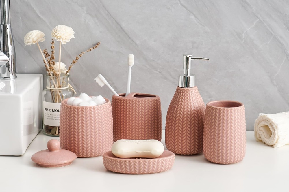 SURUI Luxury Bathroom Sink Set - 5-Piece Soap Dispenser & Toothbrush Holder Set with Cotton Swab Dispenser, Tooth Glass, Soap Dish - Ceramic Bath Accessories Set (Pink) 5-Piece Set for Bathroom Luxury: Enhance your bathroom with this 5-piece ceramic accessory set. Includes a liquid soap dispenser, tooth glass, cotton swab/cotton ball dispenser, toothbrush holder, and soap dish, all designed to add a touch of elegance to your space. Premium Ceramic Material: Made from high-quality ceramics, this set offers a smooth and durable feel. The materials are hard, corrosion-resistant, and scratch-resistant, ensuring long-term use. Sleek Minimalist Design: Featuring wave lines and understated elegance, this set provides a modern look. The smooth surface is easy to clean, with stains and water marks effortlessly washed off. Ideal Gift Choice: Perfect for housewarming, wedding, or holiday gifts, this set combines functionality and aesthetic appeal, making it a thoughtful and practical present. Customer Satisfaction Guarantee: We stand behind the quality of our bathroom accessory set. If you are not satisfied with your purchase, please contact us, and we will promptly assist you. SHIPPING Domestic Buyers - We have confidence in our products, but if you are not fully satisfied please contact us within 30 days of purchase and you will get full refund. - We ship within 3 business days of payment, usually sooner - We offer FREE shipping on all orders! - We only ship to the lower 48 states, no APO/FPO addresses or PO Boxes allowed International buyers – please note: Import duties, taxes, and charges aren't included in the item price or postage cost. These charges are the buyer's responsibility. - Please check with your country's customs office to determine what these additional costs will be prior to bidding or buying. * Order Cancellation Policy ** You can return a product for up to 30 days from the date you purchased it. 1. The seller reserves the right to cancel the special case only due to eBay cancellation fee. 2. The decision of seller is the final. 3. The seller will respond to the cancellation request within 2 business days. Please wait for the result of cancellation. 4. In case the cancellation is not completed by some reasons, the buyer can follow the options below to get the refund. 4.1 The buyer can reject the item when it arrives. 4.2 The buyer can send the item back to the seller within 30 days If the buyer receives item (USA Shipment ONLY). The seller will provide the FREE return label to the buyer when the buyer opens " Return Item" case on eBay by using the reason as "Change my mind" ONLY. 5. When buyer has placed the order. The order will be processed and completed by automatic warehouse system within 5 minutes. In case that buyer sends the cancellation request after 5 minutes of placing the order, the request will be rejected. **Sending direct message to cancel the order is not allowed for every case.* Return Policy For the return case - If buyer would like to return the items for refund or replacement, please CONTACT SELLER to receive the free return label from seller. The refund or replacement will be processed with the tracking number of return label which is provided by seller only. The other ways of return which are not approved by seller will not be processed for the refund or replacement.